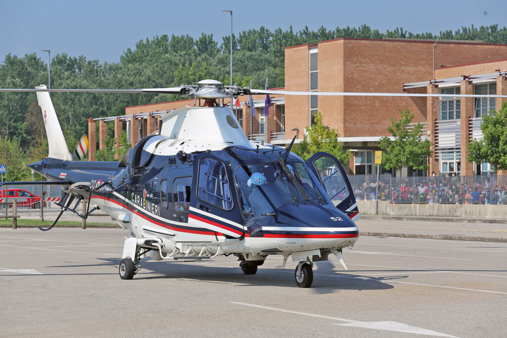 “Quando lo vedi in cielo sembra piccolo, invece è grande!”. Fortissimo lo stupore, soprattutto degli alunni più piccoli dell’Istituto Comprensivo Marconi di Casalmaggiore quando, poco prima delle 10 di questa mattina, sul piazzale riservato al parcheggio delle auto è atterrato l’elicottero del Nucleo Elicotteristi dei Carabinieri di Orio Al Serio. Tantissimo entusiasmo per gli alunni che hanno salutato l’atterraggio con un forte applauso. Tanti di loro un elicottero così da vicino non lo avevano mai visto ed è stata per loro una specie di festa. Hanno potuto vedere da vicino la libellula d’acciaio, hanno riempito di domande i carabinieri scesi dall’elicottero e il comandante della Compagnia dei Carabinieri di Casalmaggiore Fabrizio Liberati, che di elicotteri se ne intende. Liberati ha spiegato il perché delle due eliche, ha raccontato ai bambini incuriositi i comandi e il funzionamento della camera ad altissima definizione posta sotto il mezzo. E la stessa cosa è stata fatta dagli uomini dell’Arma di Bergamo che con estrema disponibilità hanno risposto a tutte le domande.
