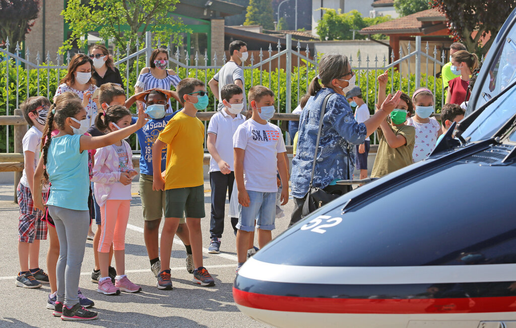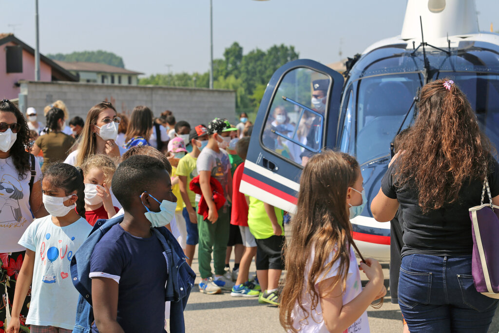 L’elicottero di Orio Al Serio era nell’area Casalasca per un servizio di controllo – anche dal cielo – del territorio ma quell’ora passata tra i bimbi è stata un’ora trascorsa più che volentieri dagli uomini in divisa che si sono dovuti destreggiare tra le curiosità dei piccoli.