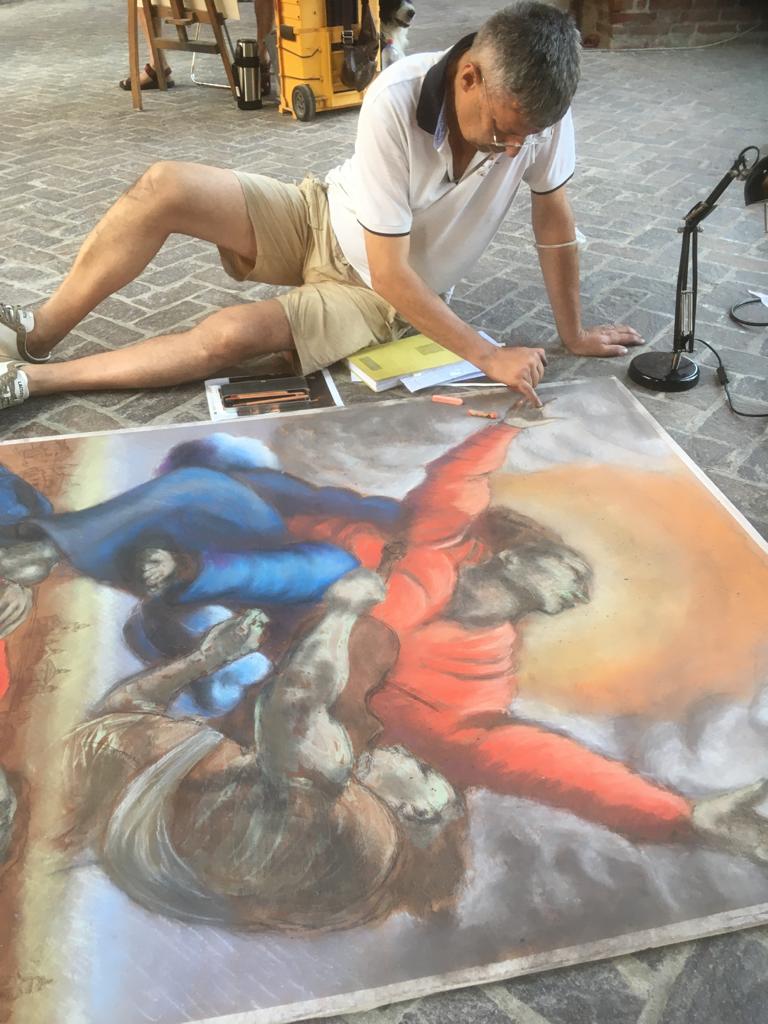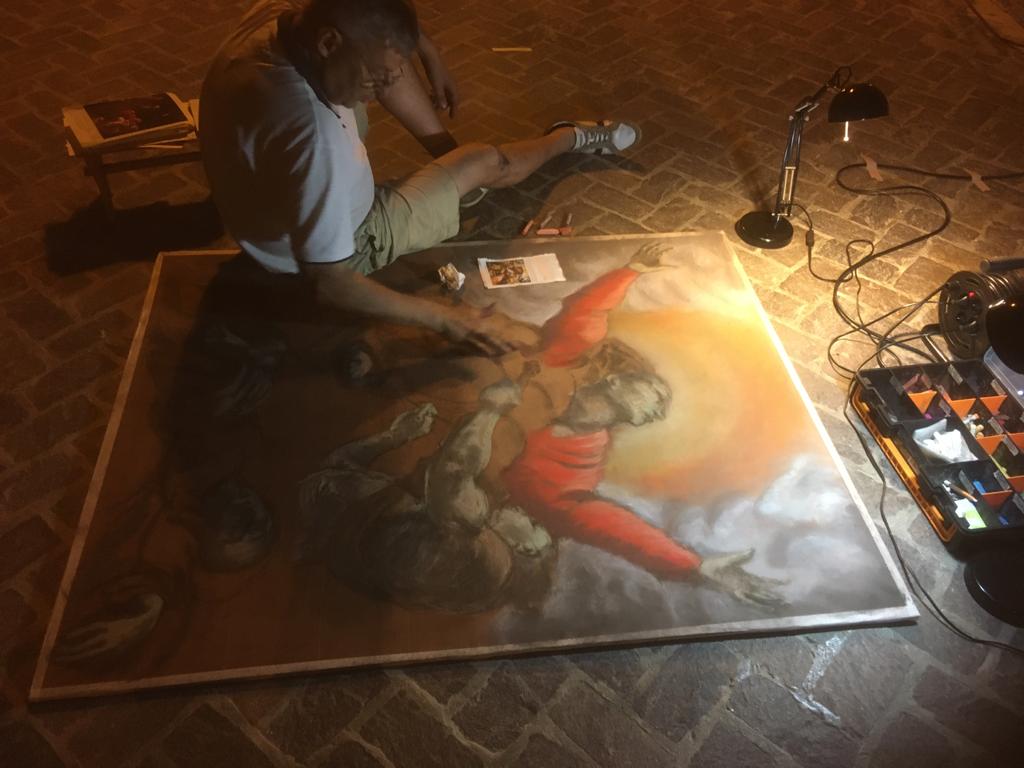 Uno spettacolo notevole con le creazioni di una quindicina di artisti, solitamente pronti ad esibirsi al Santuario delle Grazie di Curtatone, che hanno dato libero sfogo al loro genio. Alle 19 di sabato il via ai lavori, poi la maratona notturna e, all’alba, il regalo più bello per la cittadinanza: Galleria degli Antichi così come non si era mai vista (se non, in piccola percentuale, lo scorso anno).