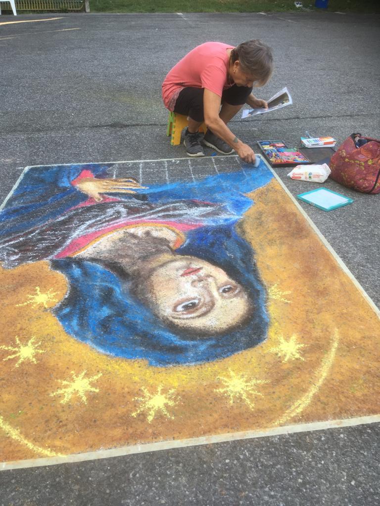 Alcuni di questi, poi, resteranno e non saranno spazzati via da pioggia e tempo, come avviene con le opere realizzate su porfido e asfalto. La Pro Loco ha infatti messo a disposizione alcuni quadranti, sui quali le Madonne o i soggetti dipinti coi gessetti resteranno per sempre.