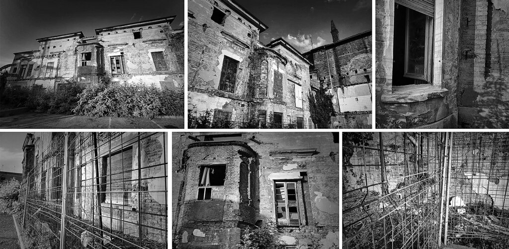 Il regno di pantegane e piccioni, la meta di sbandati e giovani in cerca di emozioni forti è lì, sotto gli occhi (percossi e attoniti direbbe il Manzoni) di tutti. Sassi instabili, lucernari con le due facce ormai rivolte al cielo. Porte in legno, vecchie improbabili finestre sulla parte che dà al parcheggio. Un lavandino in sospeso che l’edera ricopre. Il ricordo di antichi fasti sulla parte davanti, quella vincolata dalle Belle Arti che vincolano le pietre in attesa che cadano giù. Istituzioni assenti.
