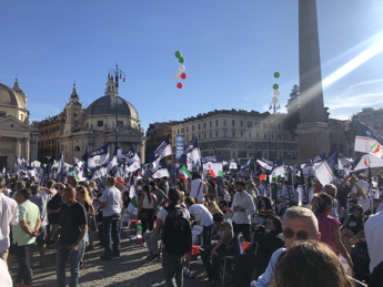 Roma, piazza del Popolo gremita attende il comizio di Meloni e Michetti