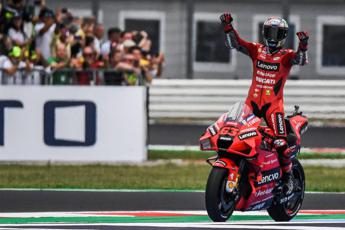 Francesco ‘Pecco’ Bagnaia vince il Gp di San Marino e centra il secondo successo di fila in MotoGp dopo quello di Aragon. Sul circuito di Misano Adriatico intitolato a Marco Simoncelli, Il 24enne portacolori della Ducati, scattato dalla pole position, si impone dopo una gara sempre al comando davanti alla Yamaha del leader del mondiale, il francese Fabio Quartararo e al connazionale e compagno di marca Enea Bastianini, che conquista il primo podio in MotoGp.