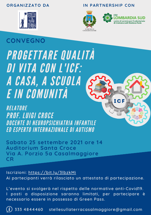 L’associazione Stelle sulla Terra – ODV, formata da famiglie di bambini e ragazzi caratterizzati da neurodiversità, presenta l’evento di formazione e approfondimento sulla “Classificazione Internazionale del Funzionamento della disabilità e della salute” (ICF). Con questa rilevante opportunità per il territorio, l’associazione si propone di promuovere un’iniziativa per migliorare la qualità della vita e mantenere aperto un costante dialogo tra genitori, enti pubblici, scuola e terzo settore.