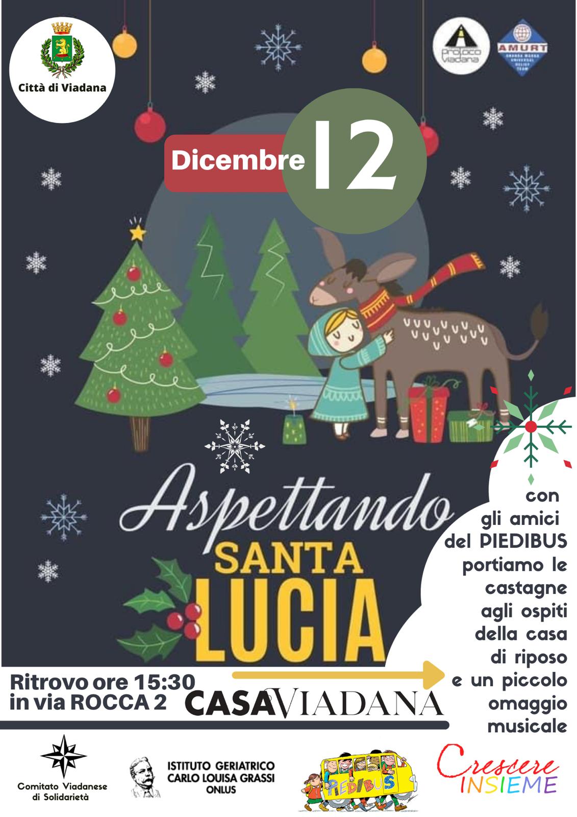 In concomitanza con l’inaugurazione della nuova sede “Casa Viadana”, domenica 12 dicembre, ProLoco Viadana riproporrà, dopo l’interruzione forzata, causata dalla pandemia, l’evento di “Aspettando Santa Lucia”. Quest’anno, l’associazione, andrà oltre, anche a causa delle regole di distanziamento sociale, al classico assetto dell’evento: grazie alla collaborazione di AMURT, piedibus, Crescere Insieme e “Ciao, ci vediamo domani” e in accordo con l’amministrazione comunale, l’evento sarà totalmente rimodulato.