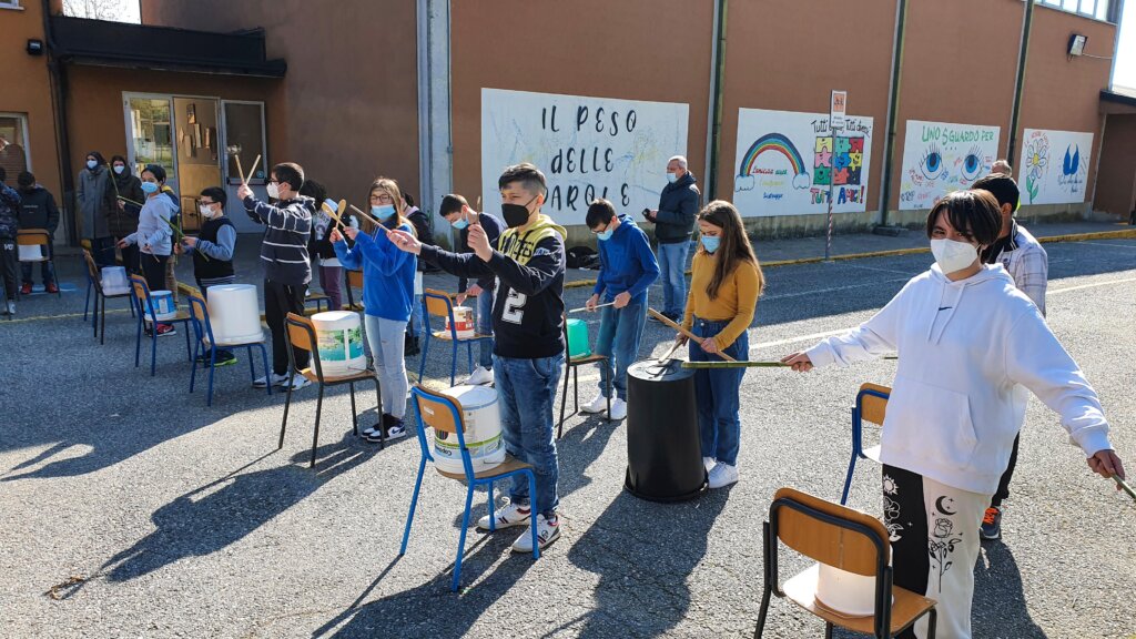 Lo hanno fatto in maniera leggera e colorata, da ragazzi, ben consapevoli e desiderosi di esprimere il proprio dissenso. Al suono delle percussioni, con la lettura di pensieri personali e riflessioni. Un’altra via – che non contempli l’odio, la sopraffazione, la violenza, le armi – è possibile. Loro la conoscono, anche se qualche adulto l’ha dimenticata. A dare supporto all’iniziativa l’amministrazione comunale (con il sindaco Luca Zanichelli presente) e la Protezione Civile di San Giovanni in Croce Le Aquile.