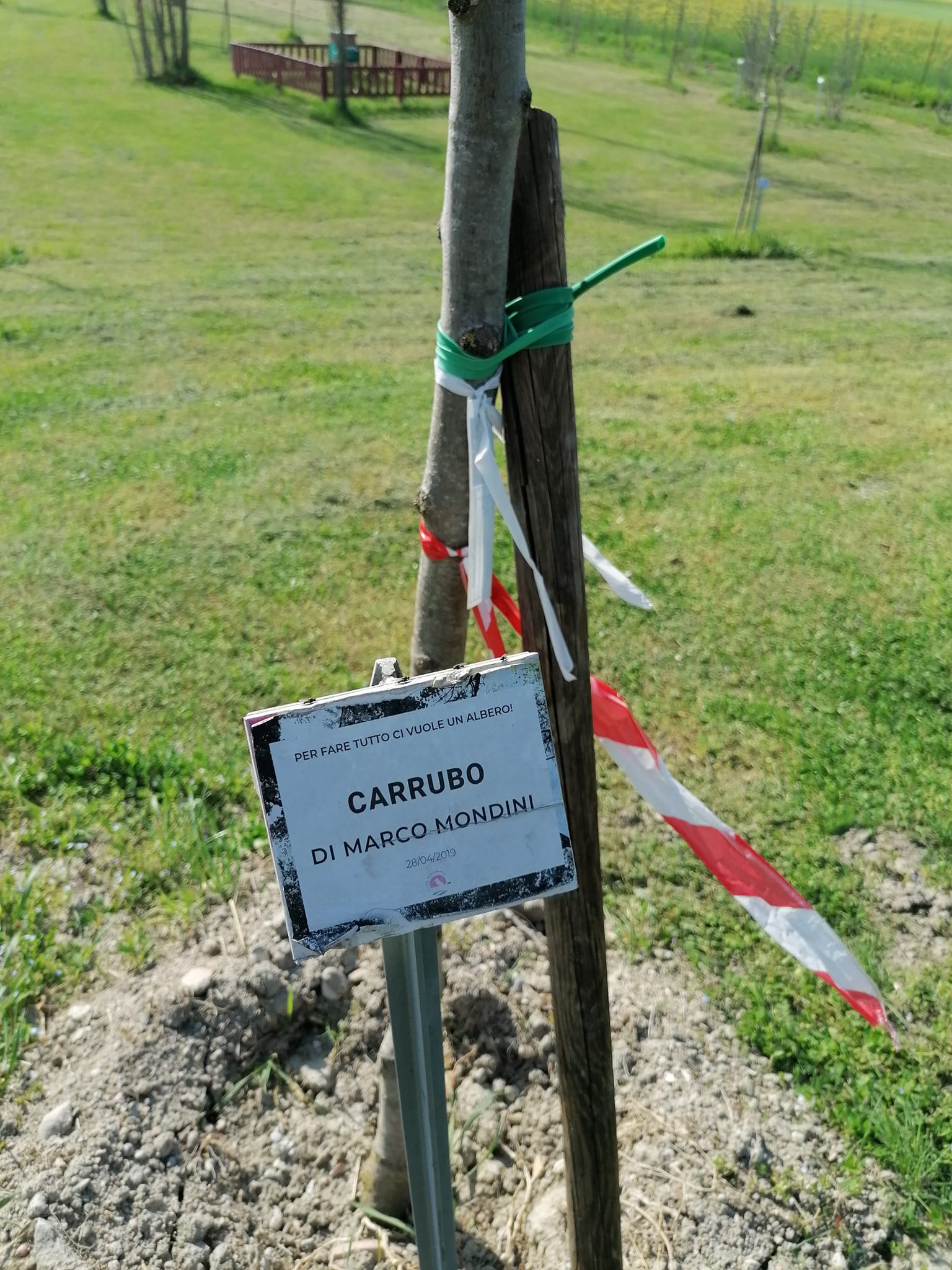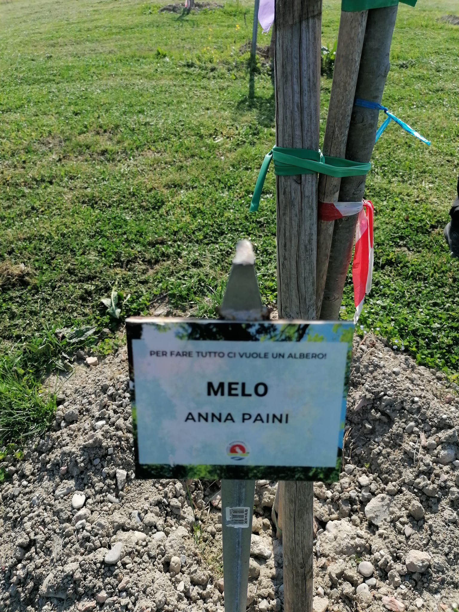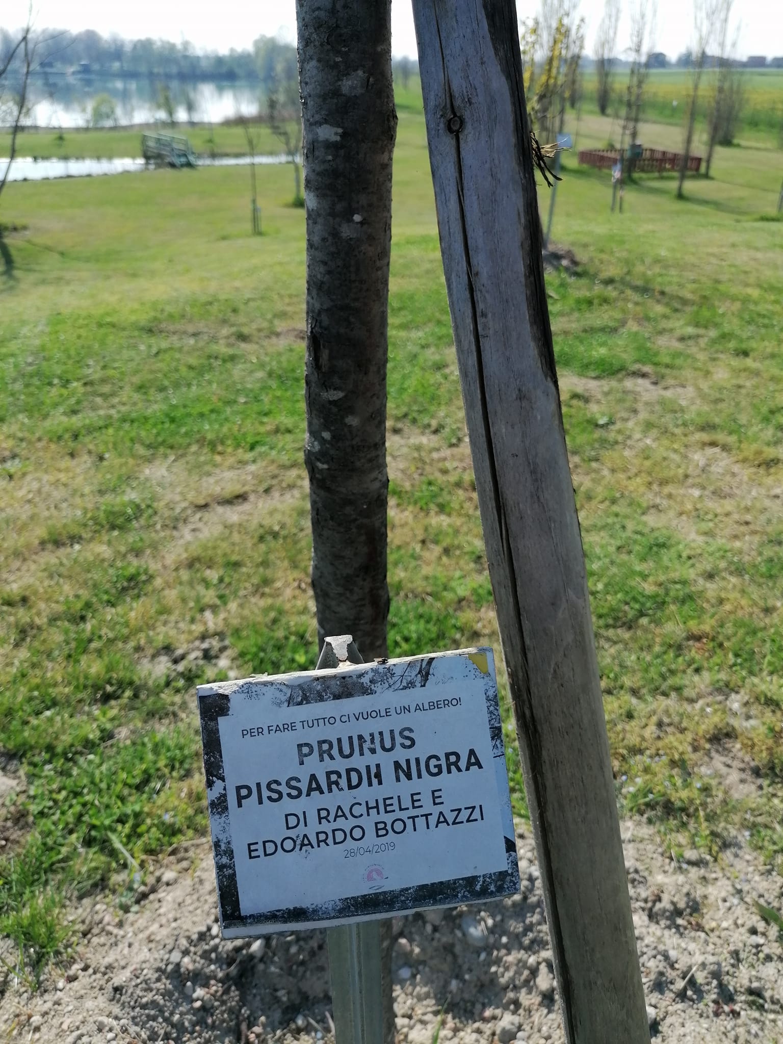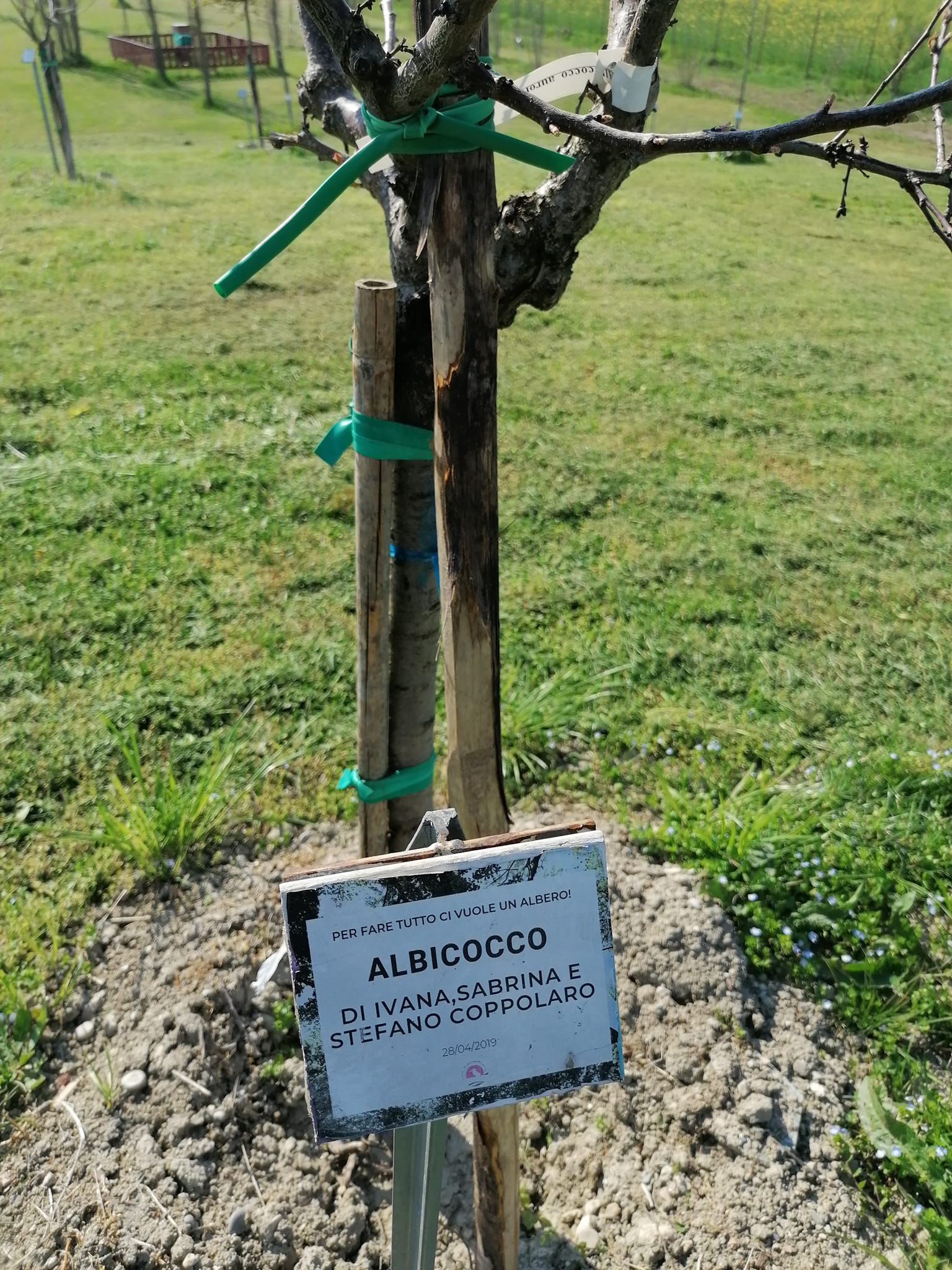La cosa che mi ha spinto a visitare il parco, tuttavia, è stata la presenza di un raro esemplare di pero, dell’antica varietà Principessa Gonzaga: e, come amante delle pere, mi ha fatto davvero piacere che la piantina, clonata da un patriarca purtroppo scomparso, campeggi al centro del labirinto, una sorta di premio per chi riesce a districarsi e a concludere il percorso. Ma la sorpresa più bella è stata questa: le piante messe a dimora sulla pittoresca collinetta del parco grazie al progetto “dona un albero”, coi nomi dei loro giovanissimi proprietari in bell’evidenza, sono quasi tutte piante da frutto, con peri, meli, cachi, ciliegi, pruni, albicoccgi e noccioli.