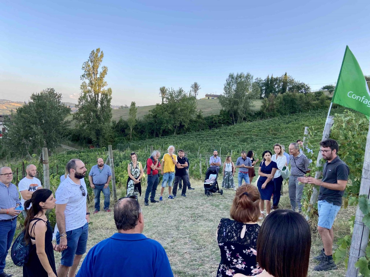 Un tour tra i filari – con i giovani imprenditori agricoli di Anga Parma e tanti cittadini – accompagnati dall’enologo Martin Zejfart e dal titolare dell’azienda, Manuel Piccoli, per fare il punto proprio alla vigilia delle prime raccolte con lo stacco dei grappoli di uve precoci per le basi spumante.