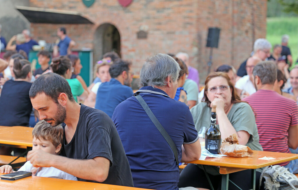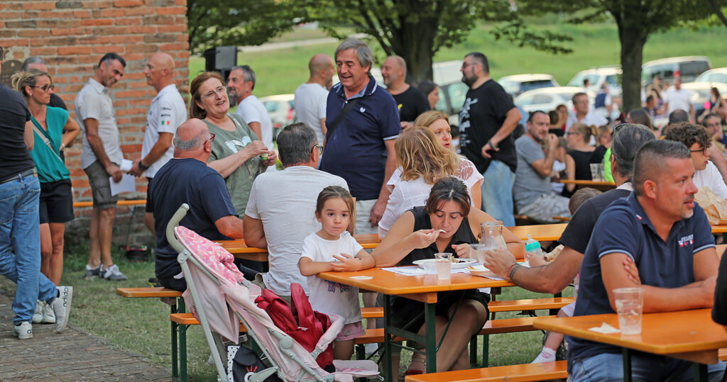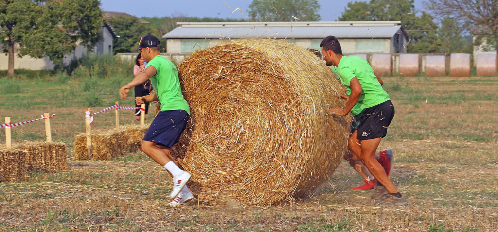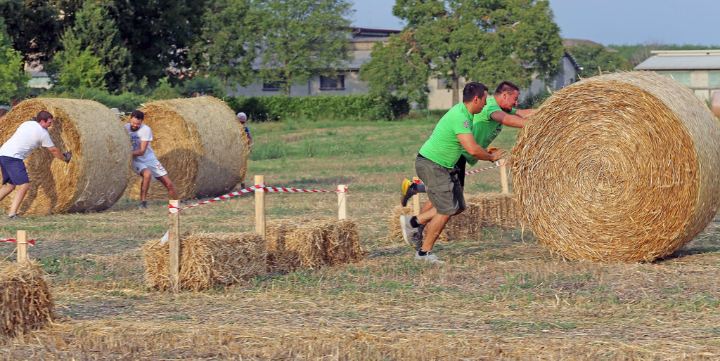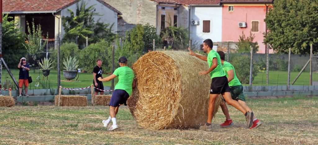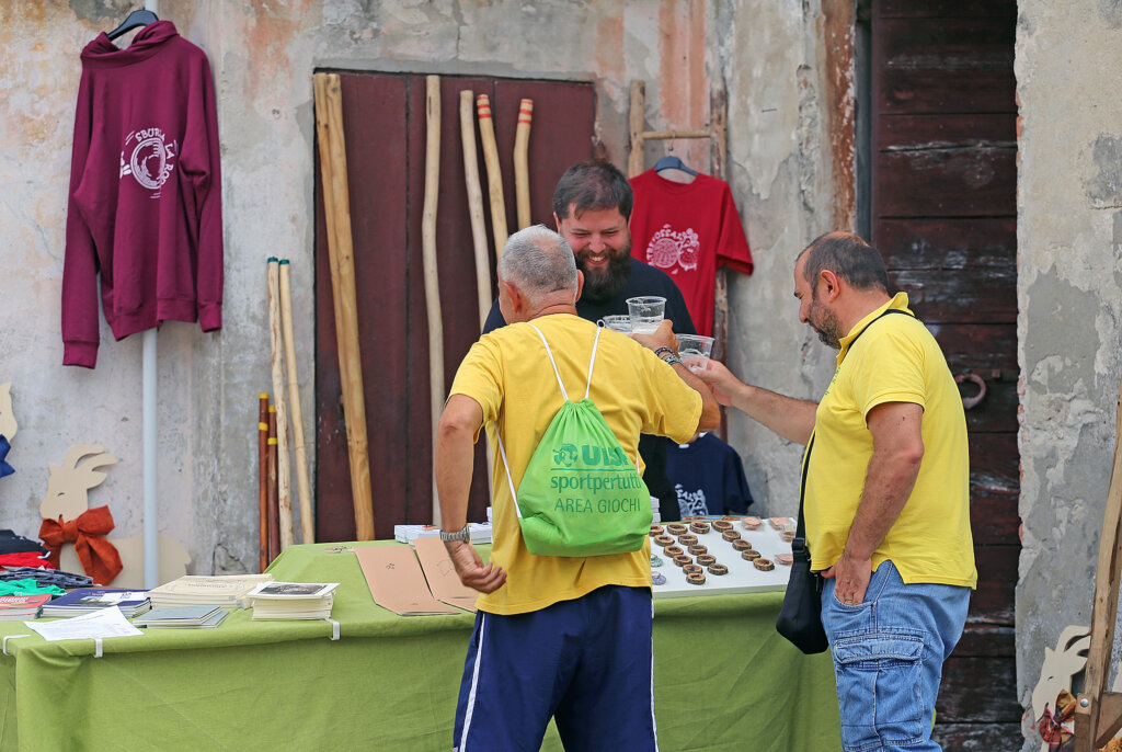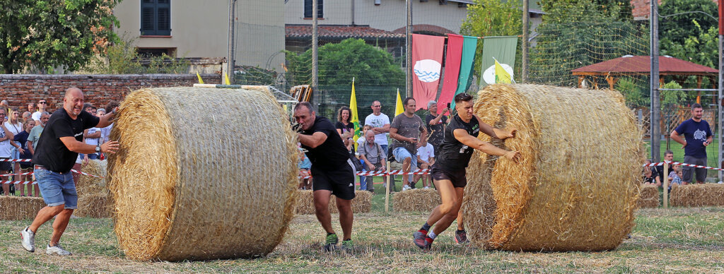 Sotto la luce delle stelle e della luna, è tornato anche il palio di Fossacaprara, una versione goliardica – ma non per questo meno sentita – dello Sburla la Roda, con la vittoria di Fossa sul percorso triangolare appositamente allestito e con gli spingitori disturbati dai tifosi delle rispettive fazioni (spesso selezionate random con i numeri civici pari o dispari del paese) con il lancio della farina. E’ stata questa l’ideale chiusura – mentre il “ristorante” all’aperto faceva registrare il tutto esaurito grazie all’inesauribile verve dei preziosissimi volontari dell’associazione Oltrefossa – della tre giorni, passata anche da altri giochi tipici come il Cacio al fuso di Pienza, il Battichiodo, i Trampolisti di Schieti, la Morra di Barbariga e il palio dei cavalli a dondolo.