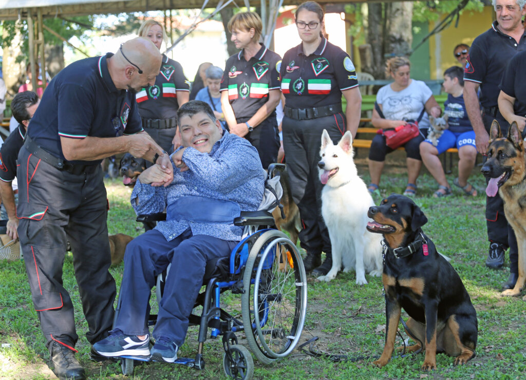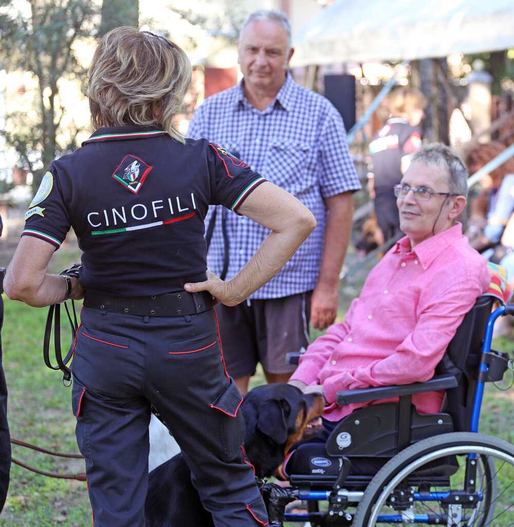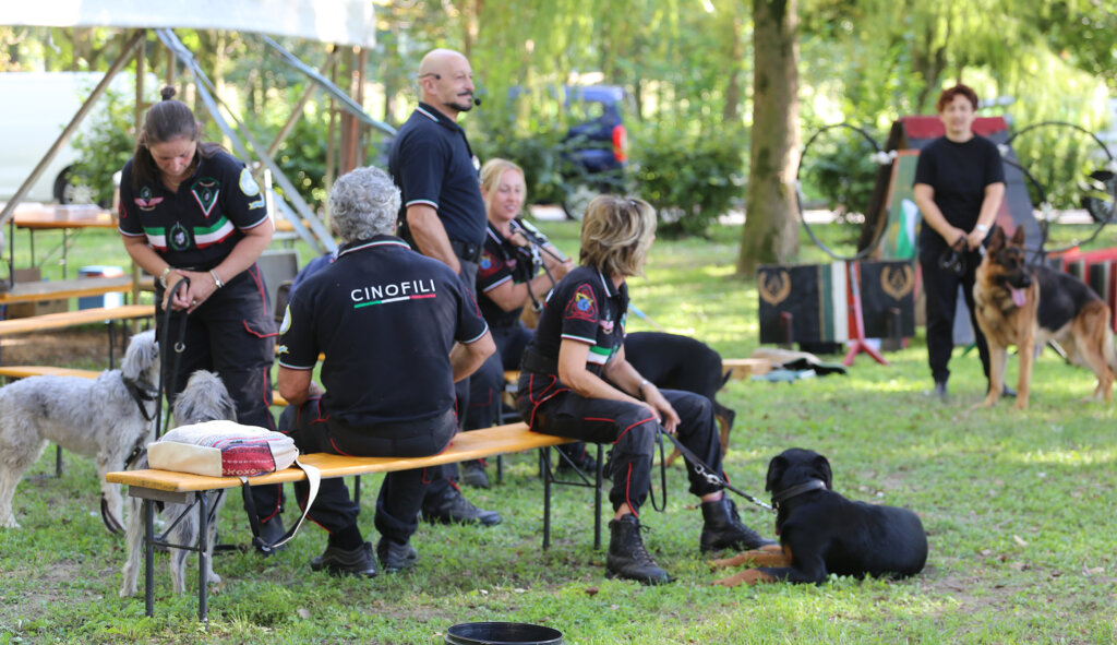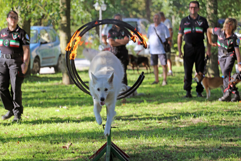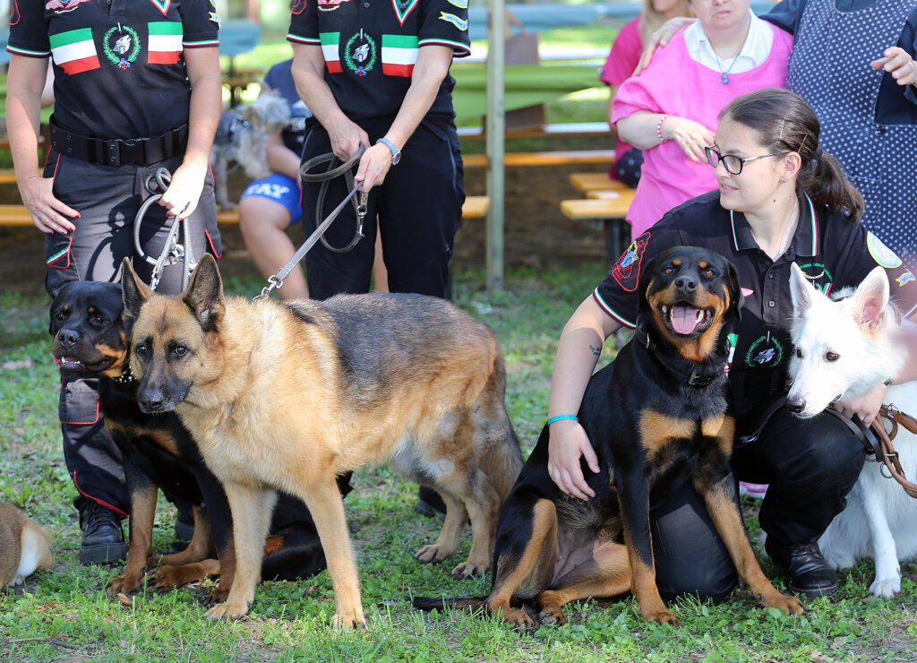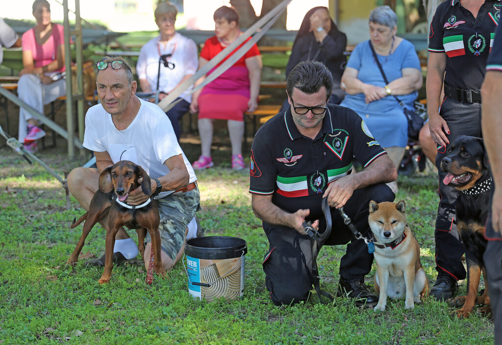 Un bello spettacolo quello offerto da Aldo Taietti, istruttore cinofilo per le Forze dell’Ordine e per la Protezione Civile, e dai suoi assistenti con i loro cani. Dai più esperti ai più recenti ingressi. Cani che vengono preparati alla ricerca, al controllo dell’aggressività, allo stare con le persone, all’obbedienza. Alcuni presi dai canili. Due ore di alta intensità, di dimostrazione delle altissime capacità di Taietti che opera a Pontevico ma che spesso è in giro – e gratuitamente – a sostegno di iniziative di solidarietà.