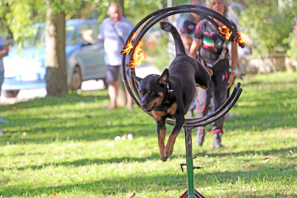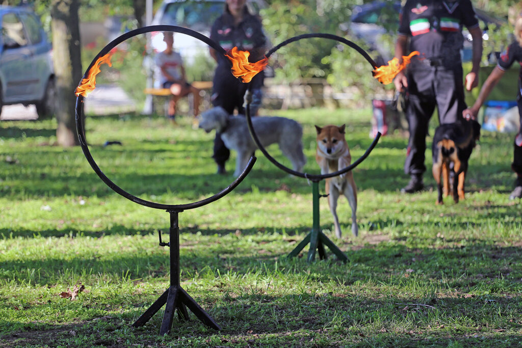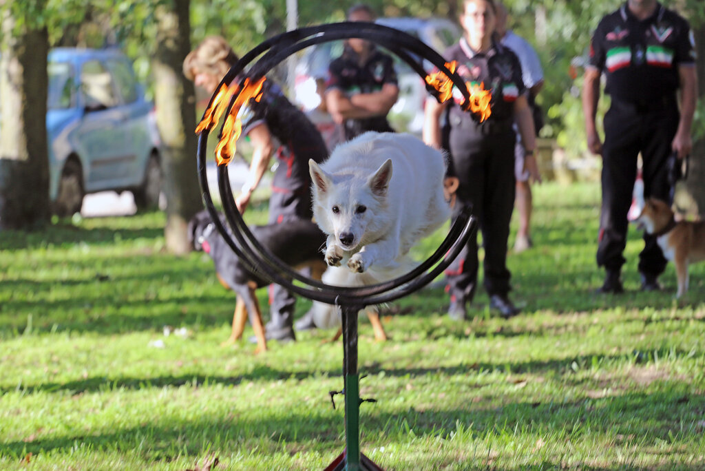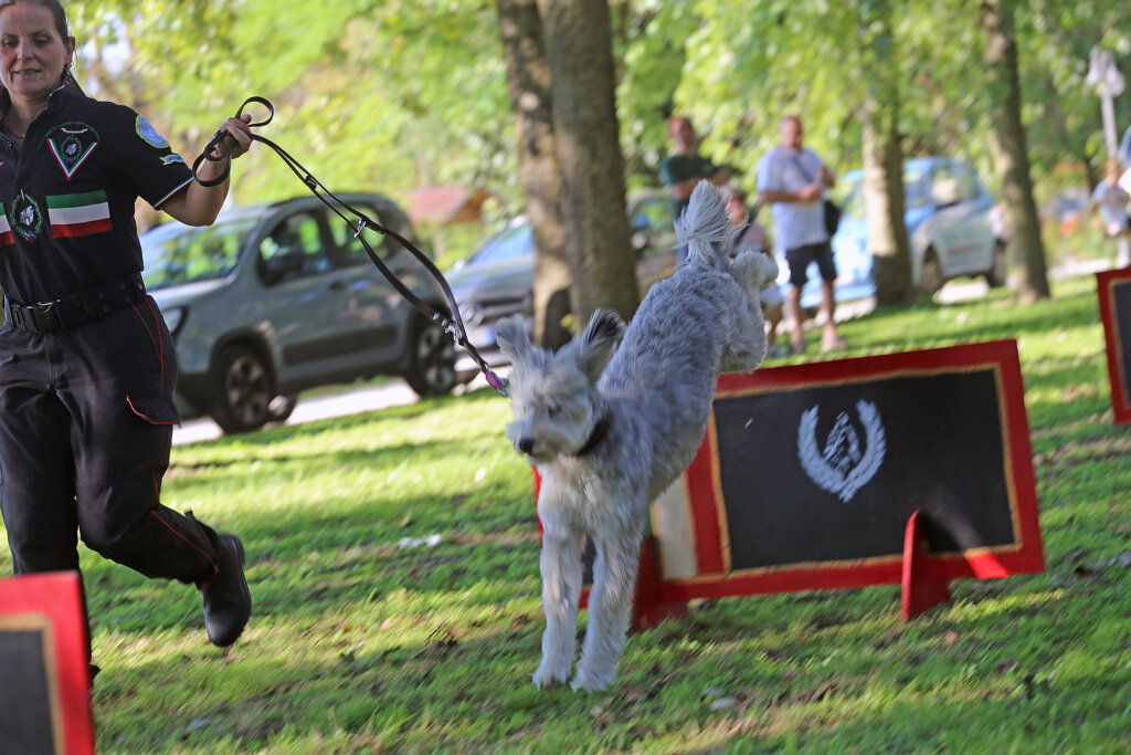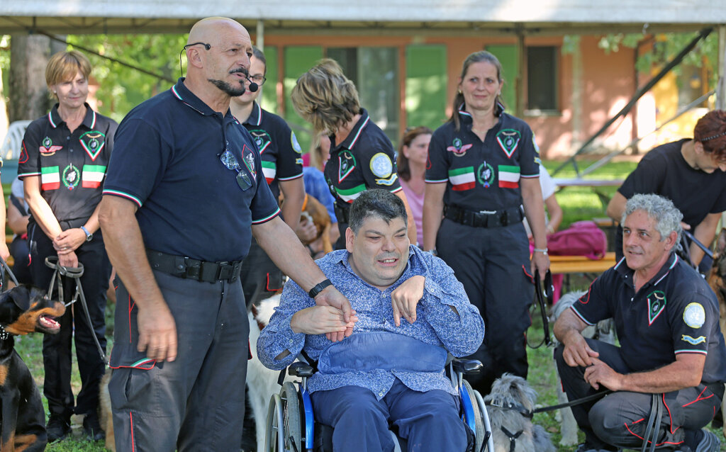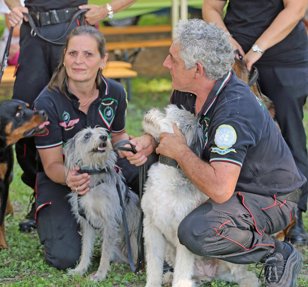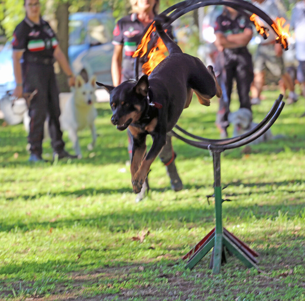 Un bello spettacolo quello offerto da Aldo Taietti, istruttore cinofilo per le Forze dell’Ordine e per la Protezione Civile, e dai suoi assistenti con i loro cani. Dai più esperti ai più recenti ingressi. Cani che vengono preparati alla ricerca, al controllo dell’aggressività, allo stare con le persone, all’obbedienza. Alcuni presi dai canili. Due ore di alta intensità, di dimostrazione delle altissime capacità di Taietti che opera a Pontevico ma che spesso è in giro – e gratuitamente – a sostegno di iniziative di solidarietà.