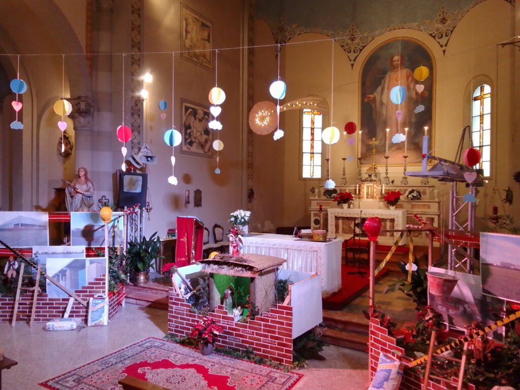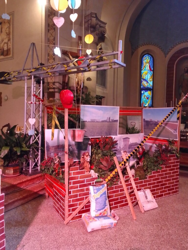 Non è mai banale il presepe di Bellaguarda, frazione di Viadana. Quest’anno, allestito in chiesa, prende spunto da un aggiornamento che è stato suggerito dal Piano Pastorale della Diocesi. “Si è voluto rappresentare – spiega Luigi Gardini – il cantiere dell’ospitalità e della casa, provocando l’attenzione di chi lo osserva con attrezzature e strumenti che si utilizzano normalmente per la costruzione di un edificio, mattoni, cemento, gru cazzuole ed arnesi vari da muratore, poi intorno alla capanna mattoni che riportano il significato dell’impegno cristiano quali l’ospitalità, il dono, la compassione, la fraternità e sullo sfondo immagini manifesto riportanti varie realtà del nostro territorio”.