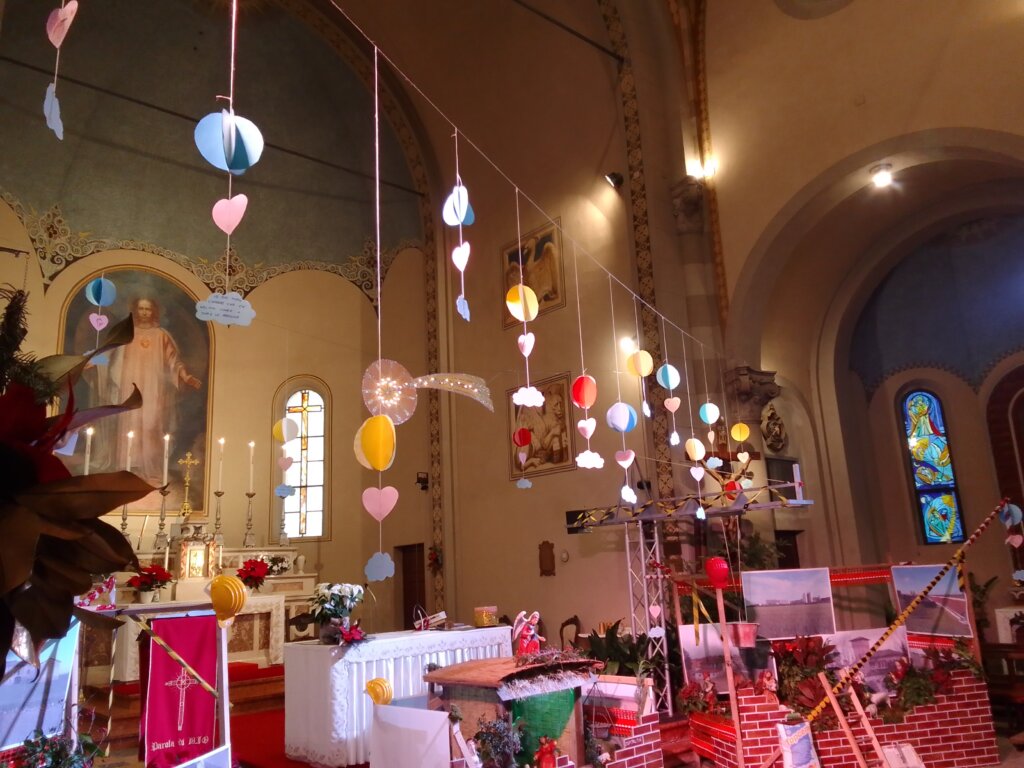 “Appese nel cielo le mongolfiere realizzate da bambini delle scuole materne con l’immagine del loro volto e frasi che auspicano la pace e il volersi bene. Un presepe che vuole sottolineare come la dimensione spirituale del cristiano non può essere priva di azioni pratiche concrete per realizzare vera fraternità. Invitiamo il pubblico a visitarlo”.