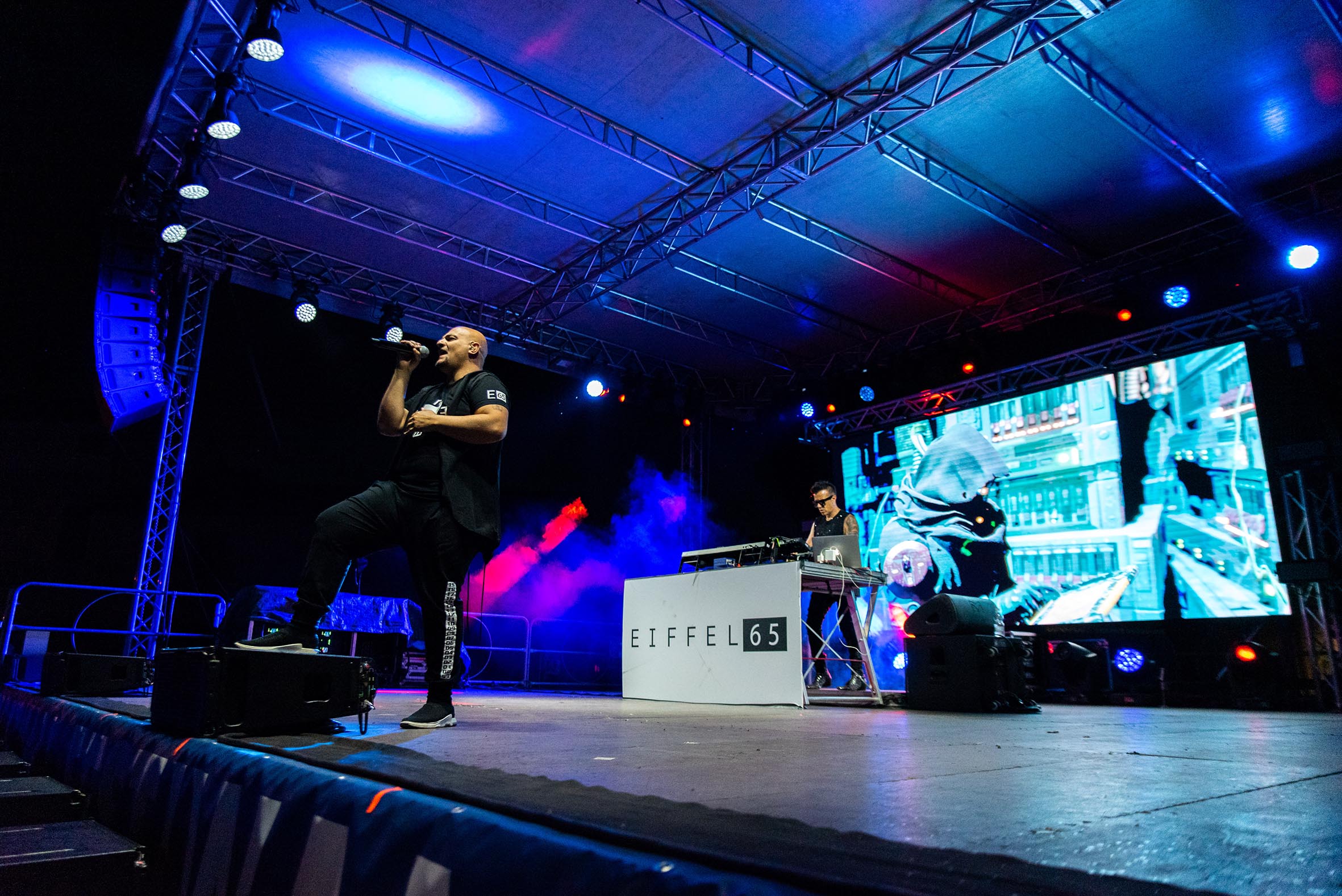 Nemmeno la pioggia, che ha accompagnato per l’intera durata il concerto, ha scoraggiato pubblico e artisti: quasi tutti gli spettatori, arrivati per assistere al live, sono rimasti a danzare sotto la pioggia al ritmo di hit indimenticabili come “Blue”, “Too much of heaven”, “Move your body”, “Lucky”, “Quelli che non hanno età”. Il grande affiatamento tra Eiffel 65 e pubblico, e anche la pioggia, hanno creato un’atmosfera magica, rafforzando ancora di più l’energia positiva della serata.