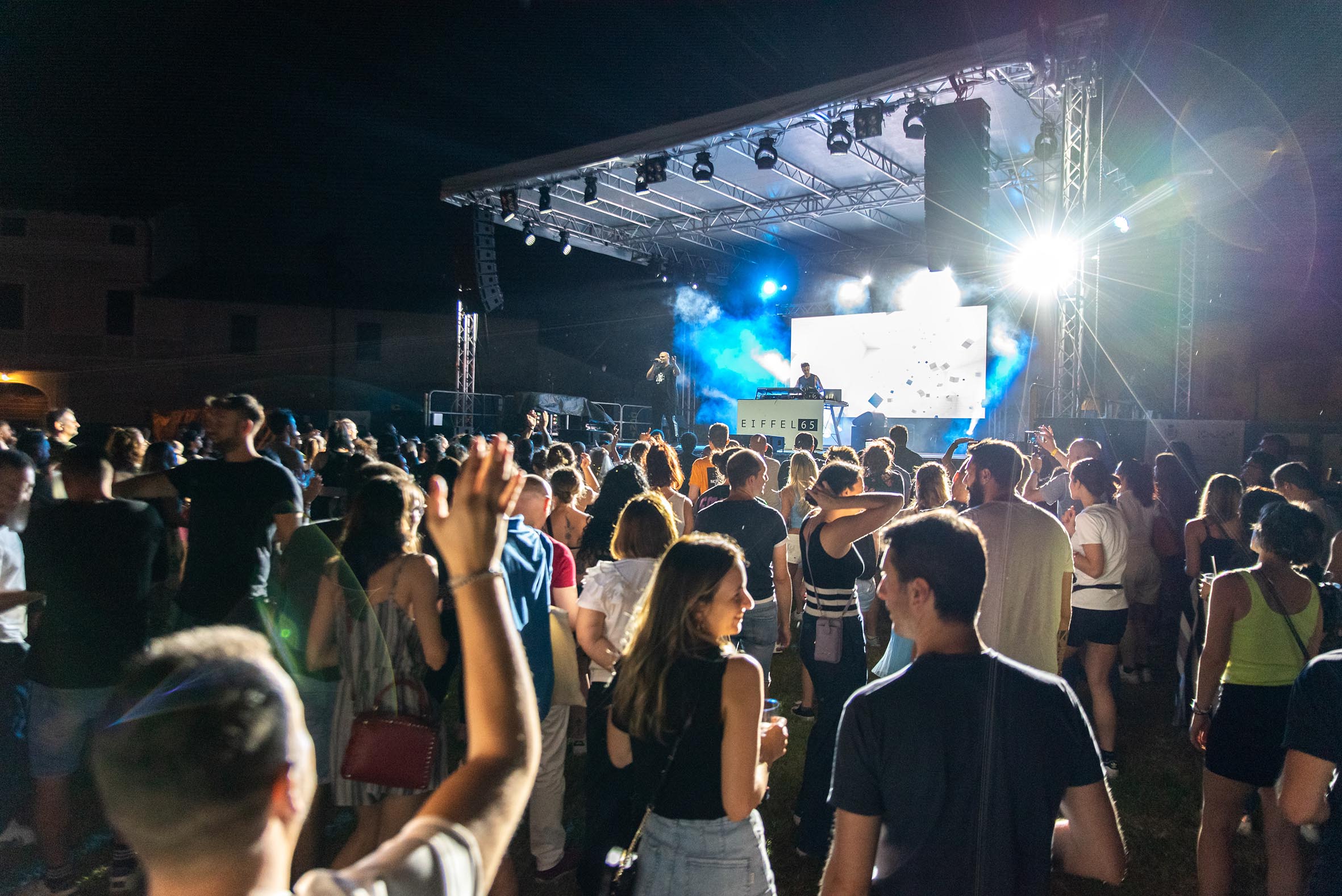 Per l’evento, il secondo in cartellone della rassegna, L’Arena Spalto Bresciani ha cambiato il suo aspetto diventando, esclusivamente per la data live degli Eiffel 65, una pista da ballo all’aperto per festeggiare i meravigliosi anni 90 e non solo, con i grandi successi del gruppo dance.