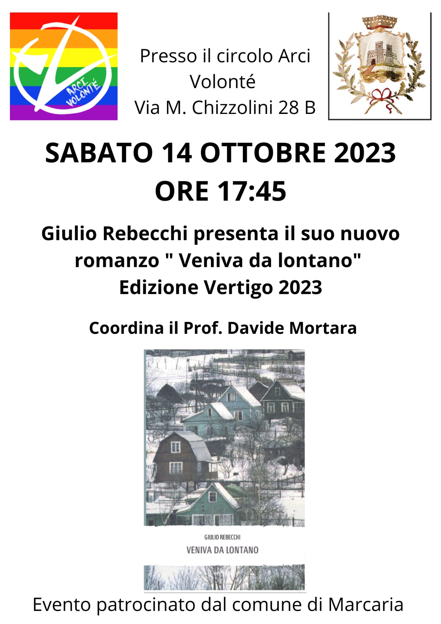 Sabato 14 ottobre 2023 alle ore 17.45, presso il circolo Arci Volonté di Campitello, si terrà la presentazione del nuovo romanzo di Giulio Rebecchi “Veniva da lontano”. Coordina il prof. Davide Mortara.