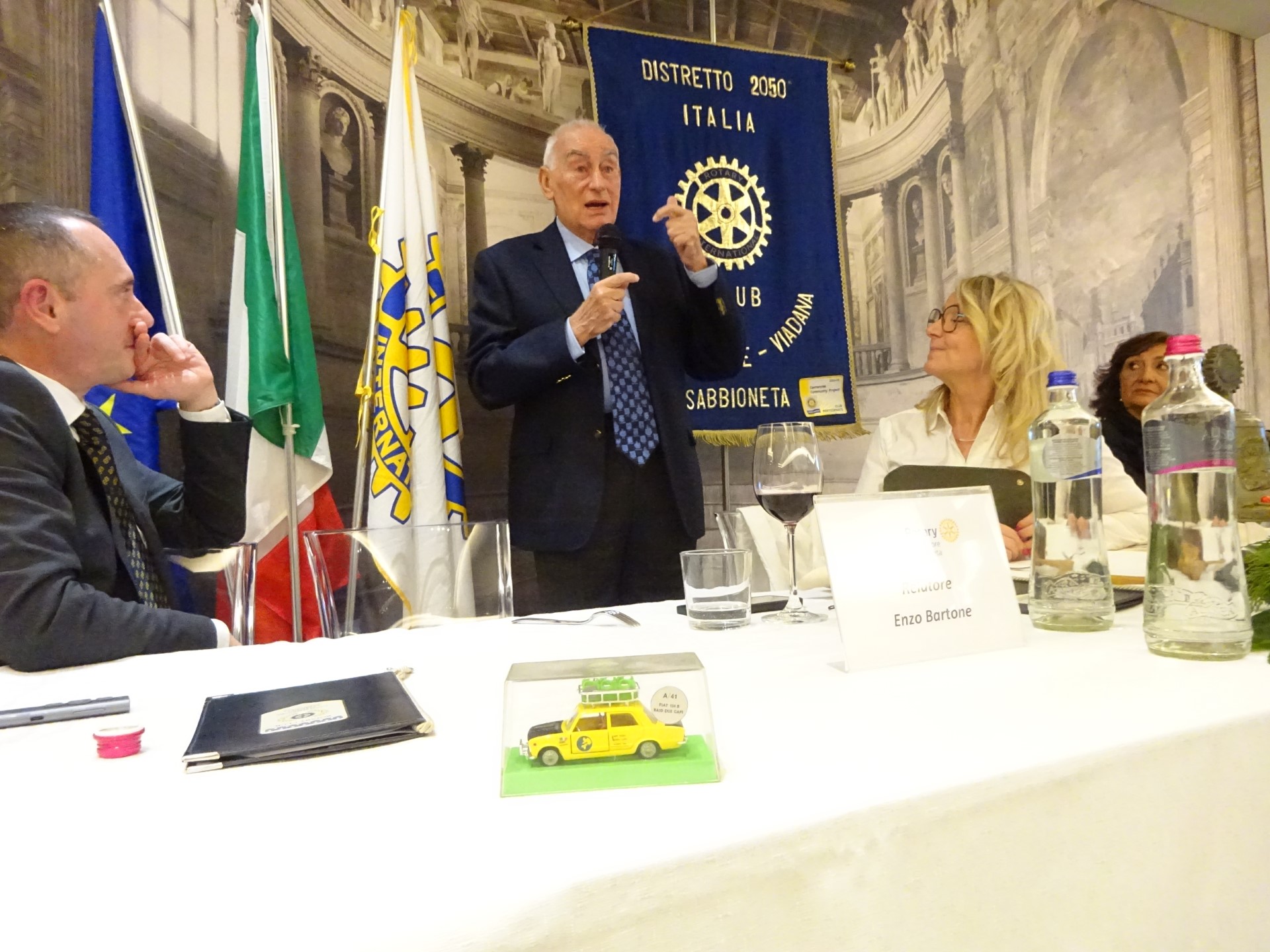 Dopo l’incontro con l’artista delle Hypercar Horacio Pagani, un altro appuntamento è stato dedicato dal Rotary Club Casalmaggiore Viadana Sabbioneta al mondo dell’automotive: a raccontare le sue mille peripezie automobilistiche, vissute in compagnia di S.A.R. Duca Amedeo d’Aosta, è stato il grande avventuriero Enzo Bartone, nella serata del 4 dicembre.
