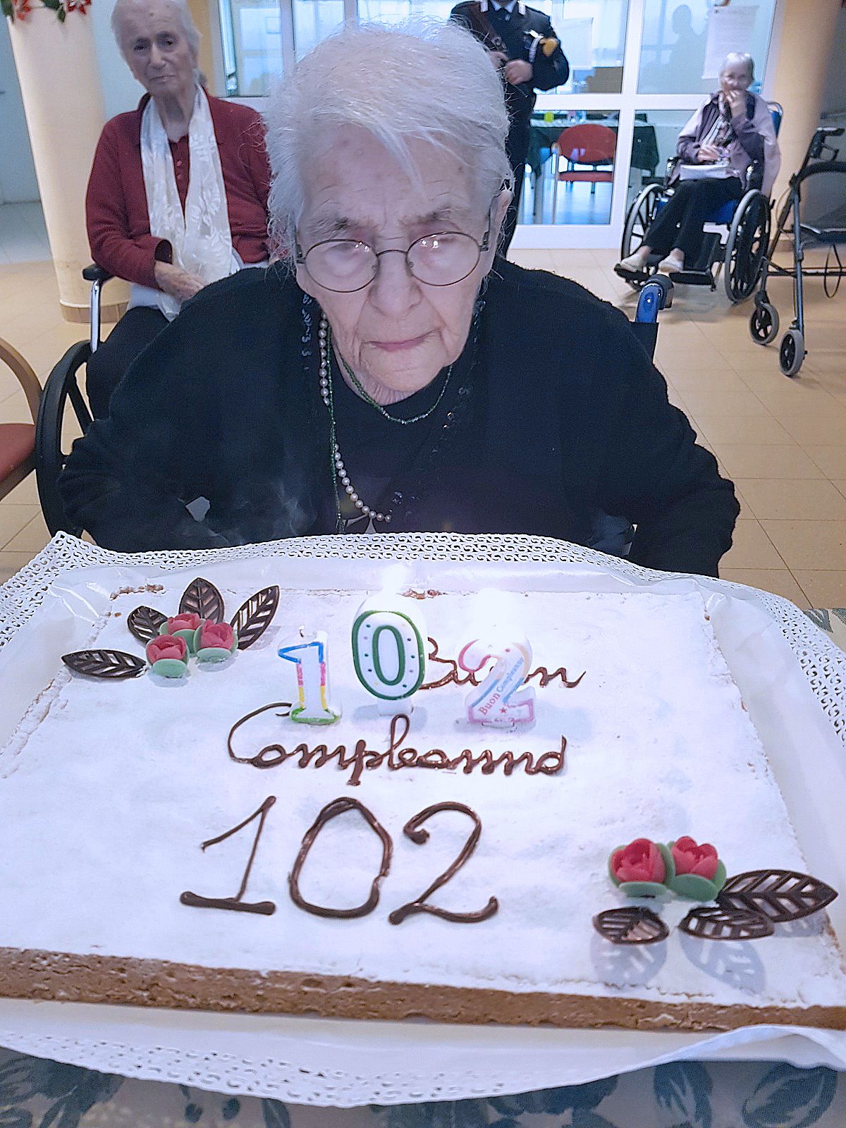 Mercoledì 13 dicembre, nel giorno più bello e atteso dai piccini, ma anche dai più grandi, la signora Bice Tenca, ospite presso la rsa Serini di Sabbioneta, ha festeggiato il suo 102° compleanno! Anche se ufficialmente per l’anagrafe risulta nata il 14 dicembre del lontano 1921 (a quei tempi non era insolito registrare la nascita di un figlio anche dopo il giorno effettivo dell’evento), Bice ha sempre desiderato festeggiare nel giorno in cui è realmente nata. Circondata dall’affetto dei suoi cari, la signora ha ricevuto la gradita visita del Maresciallo della stazione dei carabinieri di Sabbioneta, Mauro Labriola con il collega Angelo, omaggiandola con un presente floreale e con il calendario dell’arma del nuovo anno. Sono intervenuti anche gli assessori del Comune di Sabbioneta, Romina Marchini e Angiolino Maja che, a nome del sindaco e dell’amministrazione comunale, si sono congratulati per questo importante traguardo, donandole un colorato mazzo di fiori. Non sono ovviamente mancati i calorosi auguri da parte della Direzione, del personale e degli Ospiti della rsa Serini che, commossi, si sono uniti alla evidente felicità di Bice che, scherzando e affidandosi al volere del Signore, ha dato appuntamento a tutti al prossimo compleanno.