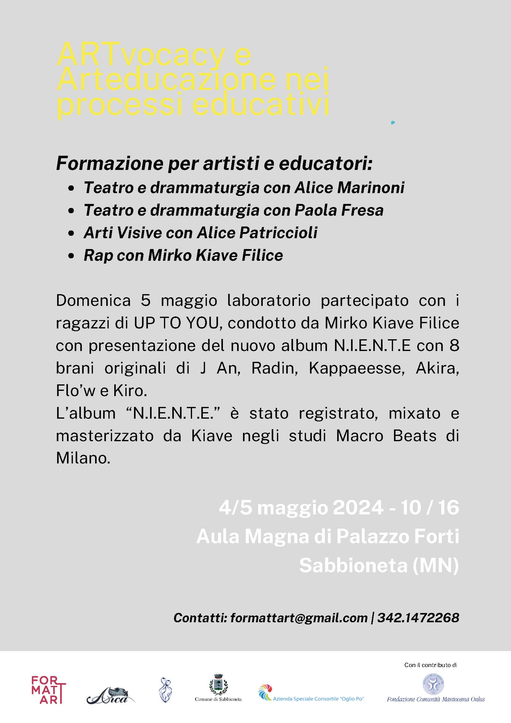Per Informazioni ed iscrizioni (aperta fino a 2 maggio) contattare: formattart@gmail.com | 342.1472268