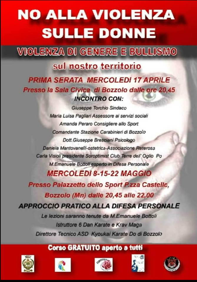 Serata riuscita alla sala civica di Bozzolo contro la violenza sulle donne e il bullismo, con qualificati interventi dei relatori di fronte a un pubblico attento. Ha introdotto gli interventi l’assessore ai servizi sociali Maria Luisa Pagliari, la quale ha tratteggiato l’impegno dell’amministrazione sui temi della violenza di genere ed ha esposto il programma del corso di difesa, che avrà luogo nelle prossime settimane.