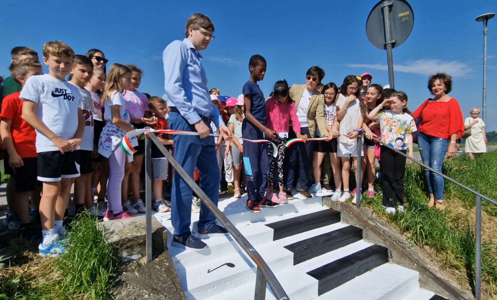 Cura il paese, immaginando qualcosa di bello. Parola ai giovani, allora, ai bambini, alle scuole. In particolare le elementari di Vicomoscano. A Casalmaggiore nasce così verso l’argine maestro la scalinata della musica. I bambini, di fatto, nei giorni scorsi hanno ritinteggiato, dopo avere ottenuto da Aipo, mediante il tramite del comune di Casalmaggiore, il nulla osta da Aipo, la scalinata che si trova in corrispondenza di San Rocco e del Torrione. Prima una mano di bianco, poi il nero per creare l’effetto pianoforte, come se appunto la scalinata fosse lo strumento a tasti più noto di tutti.