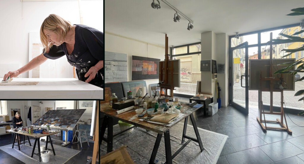 Lo studio di Borgo del Parmigianino 31 è in realtà anche luogo di esposizione, una vera e propria galleria d’arte – uno spazio luminoso con vetrine affacciate sulla strada – dove spesso Gianna Zanafredi accoglie anche le opere di amici artisti.