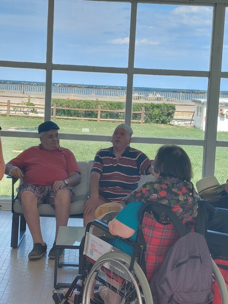 Il viaggio era un po’ lungo e in molti non erano abituati, ma tra risate e canzoni il tempo è trascorso velocemente. All’arrivo li attendeva una bella giornata di sole allietata da una fresca brezza. La vista della spiaggia, del mare ha indotto molti ad avvicinarsi all’acqua o a raccogliere conchiglie come ricordo, altri più timidamente sono rimasti all’ombra dei gazebo ma tutti hanno voluto fare una foto della giornata da donare ai figli. Il pranzo al ristorante e il gelato mangiato seduti ai tavolini del bar, continuando a guardare il mare, hanno concluso la giornata. Il ritorno più silenzioso certo, la stanchezza si è fatta sentire, ma tutti erano felici di questa giornata così diversa vissuta.