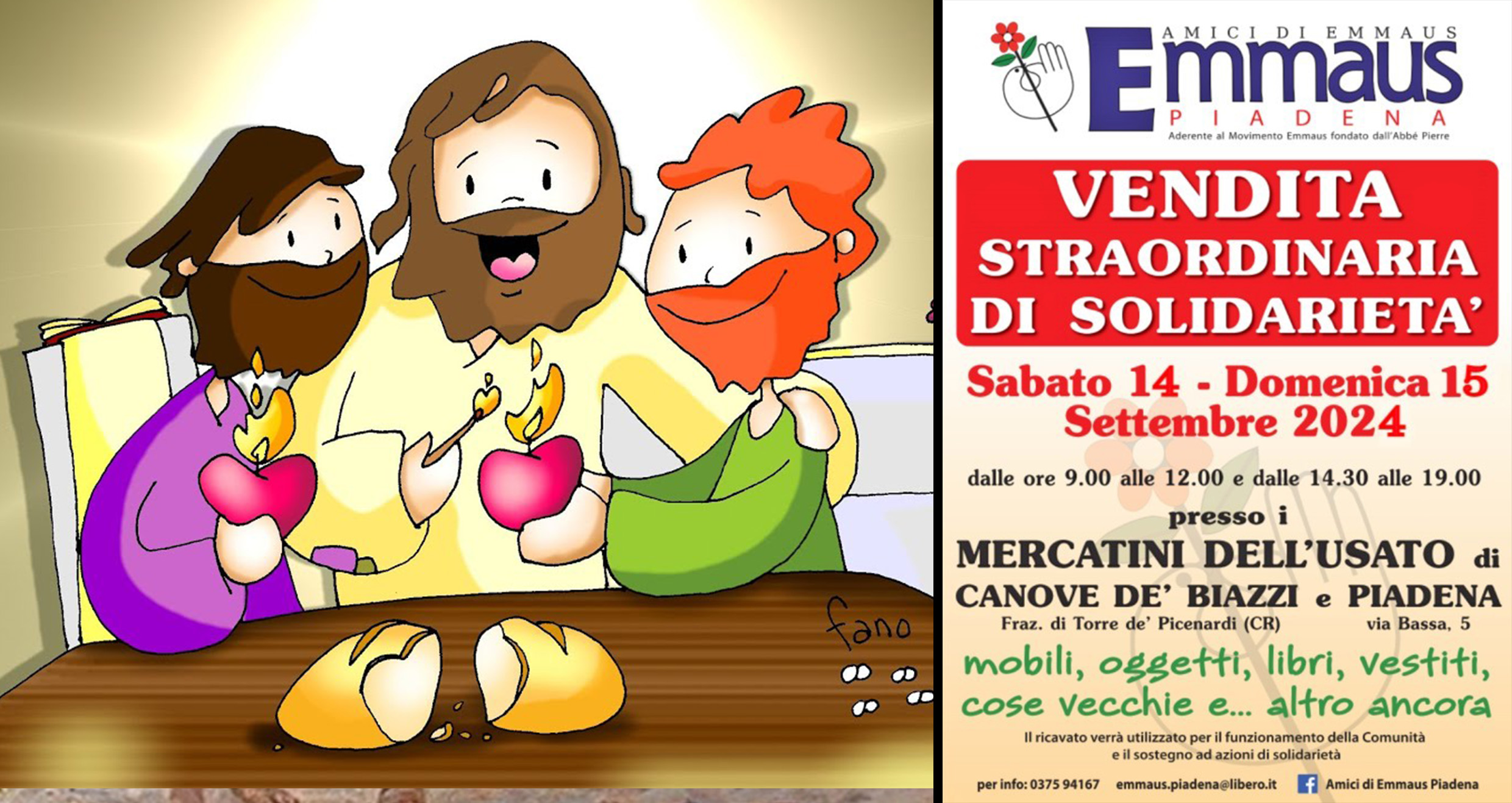 Sabato 14 e domenica 15 settembre torna la tradizionale vendita straordinaria di solidarietà presso i mercatini Emmaus di Piadena e Canove de’ Biazzi (Torre de’ Picenardi)