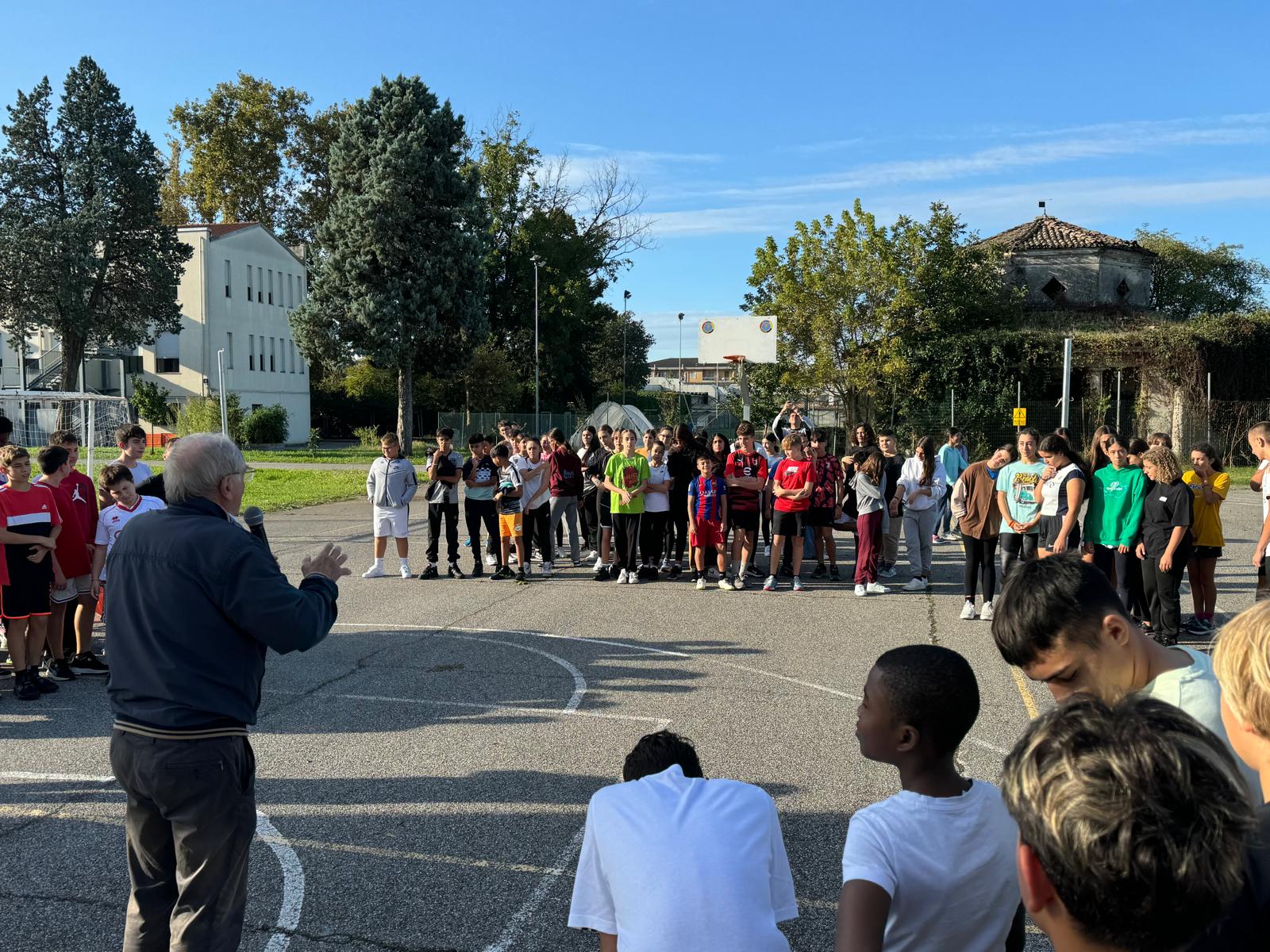 Anche se il Mennea Day è il 12 settembre, giorno dello storico record, tuttora valido a livello europeo sui 200 metri, a Casalmaggiore quest’anno è stato celebrato lunedì con la media Diotti e l’elementare Marconi, alla ripresa dell’attività. Stassano al microfono dinnanzi ai vari studenti ha voluto sottolineare l’importanza della figura di Mennea come fonte di ispirazione.