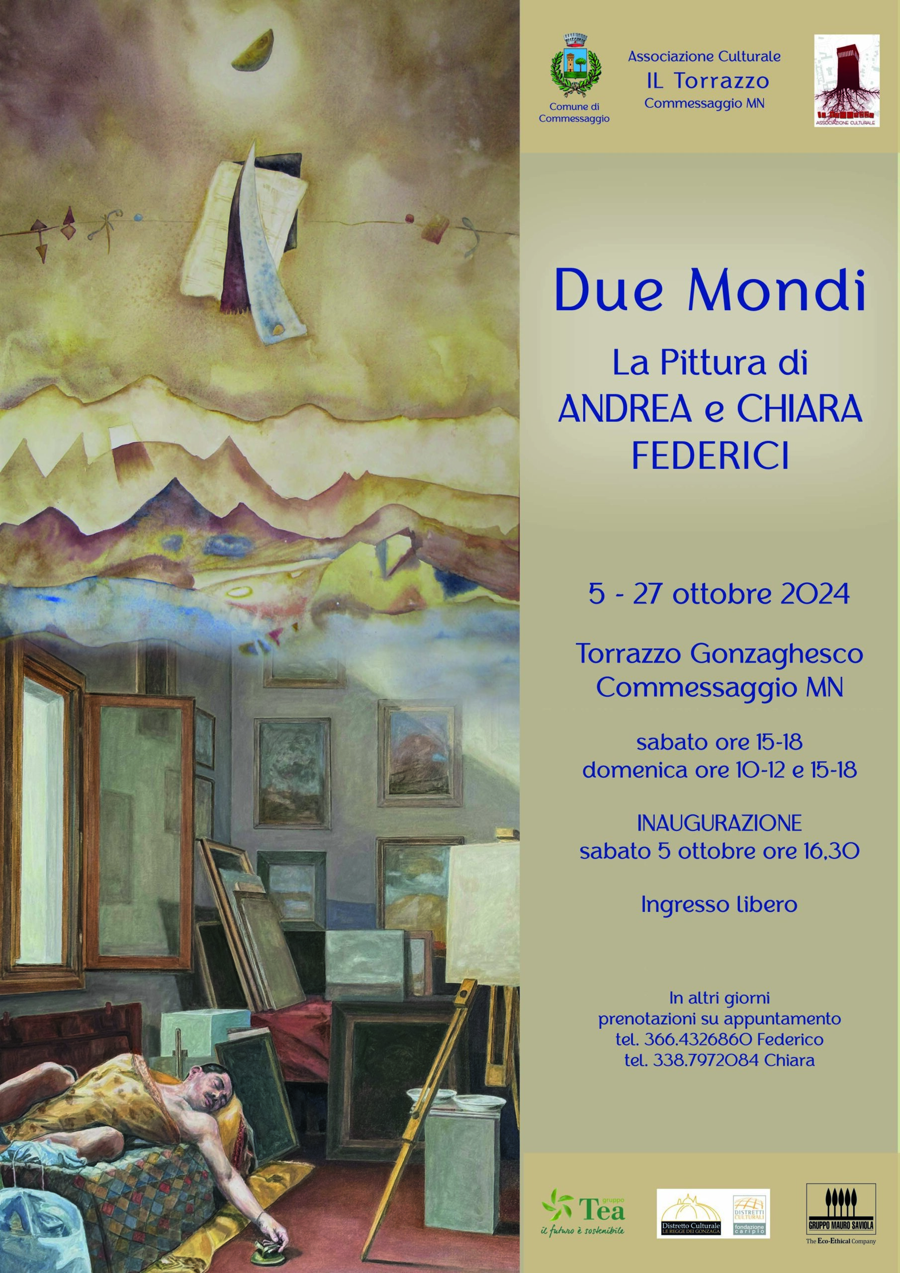 Apre la nuova mostra nel Torrazzo di Commessaggio promossa dalla Associazione culturale “IL TORRAZZO-APS” in collaborazione con la Amministrazione comunale. L’importante e bella Mostra dal titolo “DUE MONDI” degli Artisti Andrea e Chiara Federici, verrà inaugurata sabato 5 ottobre 2024 alle ore 16,30.