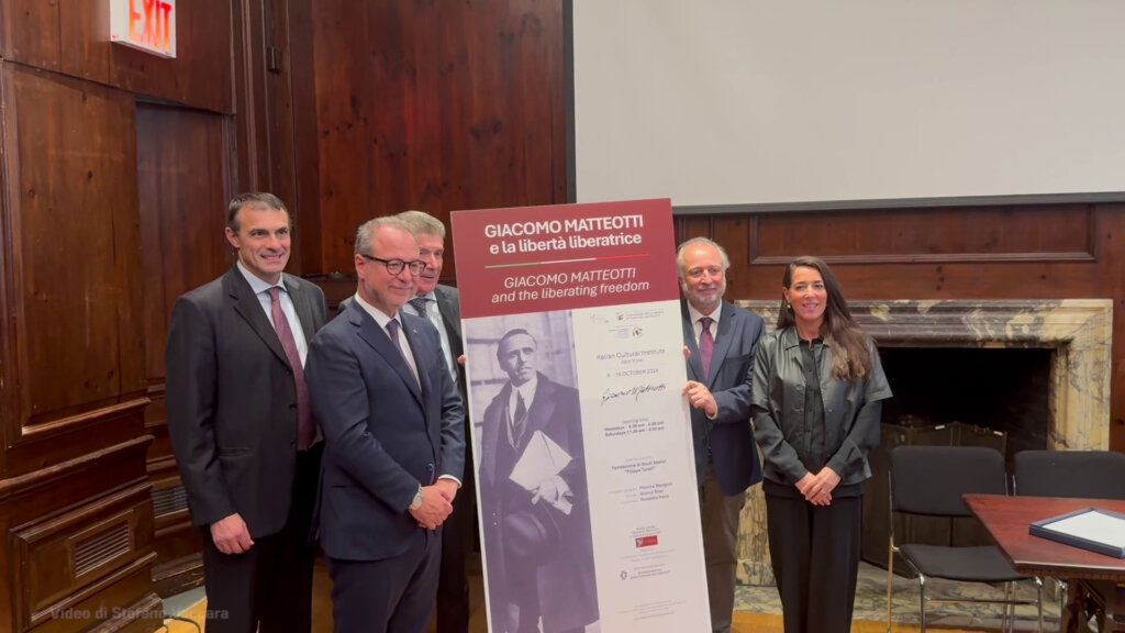NEW YORK (ITALPRESS) – All’Istituto Italiano di Cultura di New York è stata inaugurata la mostra dedicata a Giacomo Matteotti. All’ inaugurazione, in rappresentanza della Camera dei deputati, è intervenuto il Vicepresidente Giorgio Mulè e in rappresentanza del Senato la vicepresidente Licia Ronzulli. L’esposizione ripercorre la vita e l’impegno politico di Matteotti, con documenti ripresi anche dall’archivio parlamentare. E’ intervenuto anche il Console Generale Fabrizio Di Michele. Mulè ha ringraziato il Direttore dell’Istituto, Fabio Finotti e Maurizio Degl’Innocenti, Presidente della Fondazione di studi storici “Filippo Turati” e del Comitato per le celebrazioni del centenario matteottiano, “per il contributo nella realizzazione dell’esposizione”.