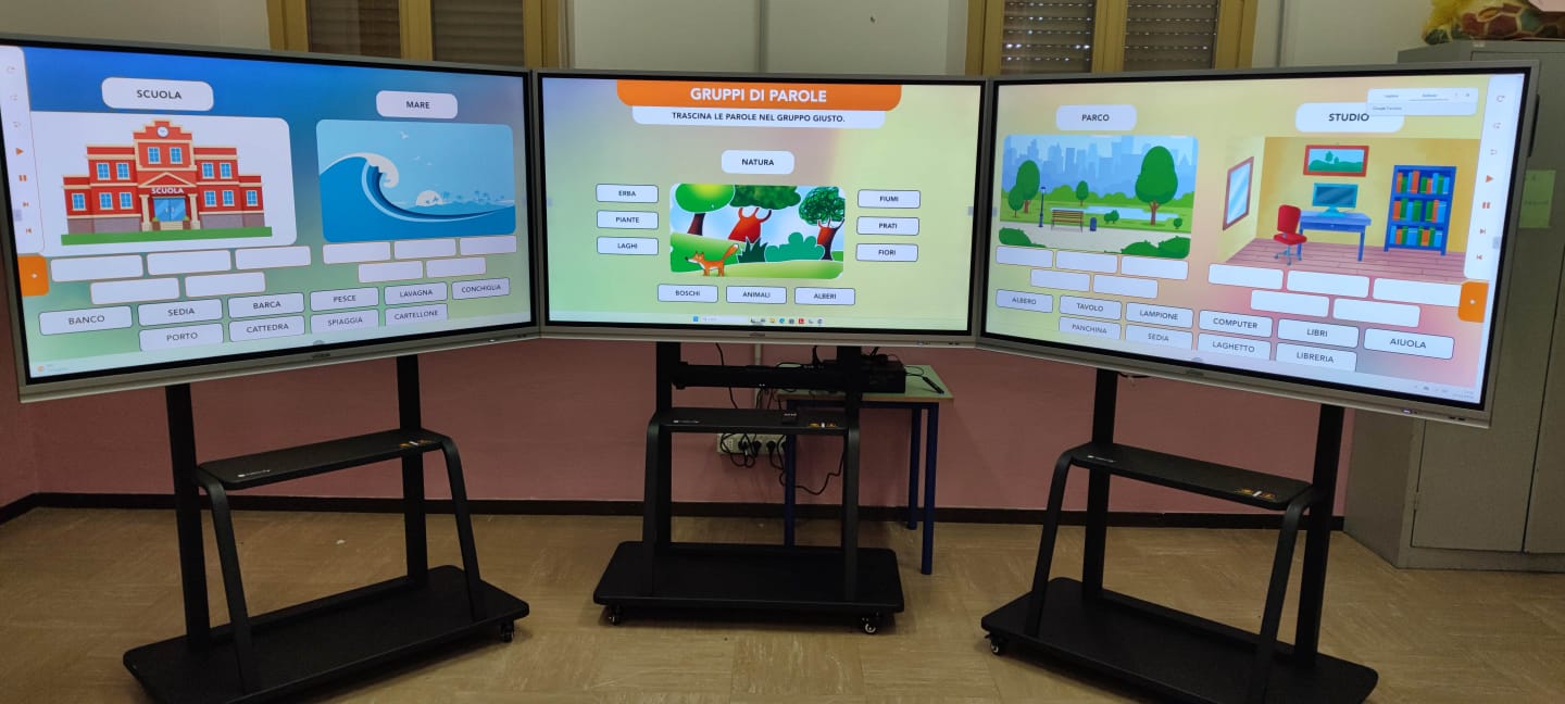 Una terza aula è “Frammenti artistici”: un laboratorio di podcasting dove i bambini impareranno a sviluppare contenuti testuali, audio e video anche attraverso una postazione tecnica con tavolo luminoso e Podcaster Studio Kit.
