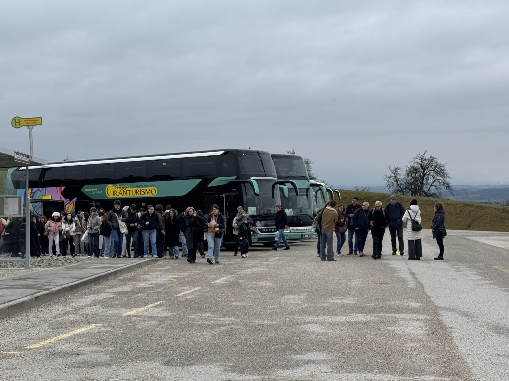 Il vocio si alza all’uscita, quando arriva il momento del pranzo, al sacco, in un’ampia sala con sobri tavoli in legno e lo spazio per poter riposare prima di riprendere il cammino per un’altra visita, altrettanto intensa al campo di Gusen.