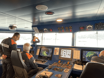 “In questi giorni effettuiamo attività di coordinamento di tutte le attività che ci sono in zona – aggiunge il capitano di fregata Guzzi – Garantiamo il rispetto dell’ordinanza di interdizione della zona. Evitiamo che imbarcazioni entrino nella zona interdetta”. E aggiunge: “Abbiamo diversi sistemi per effettuare il monitoraggio”. “Attraverso la cartografia elettronica abbiamo la situazione in tempo reale in atto”. E ci mostra sul monitor il luogo in cui ci troviamo. “Vede questa circonferenza verde? Qui c’è il relitto, il raggio di questa circonferenza è di 650 metri, all’interno della quale non è possibile avvicinarsi, né fare immersioni o balneazione. Siamo qui con altri battelli minori che garantiscono il rispetto dell’ordinanza per evitare che altre imbarcazioni possano creare interferenze”. L’Ordinanza prevede un’interdizione di tutte le attività marittime (navigazione, ancoraggio etc.) nel raggio di 650 metri dal punto del naufragio, necessaria a garantire lo svolgimento in sicurezza delle operazioni di recupero.