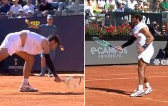 Nel secondo parziale, dopo un altro errore, Lorenzo ha scagliato una pallina in tribuna, con l’arbitro che, a quel punto, gli ha assegnato la penalità. Sul tabellone quindi il risultato è cambiato da 15-0 a 30-0, ma senza che fosse comunicato al pubblico. Il Centrale ha quindi cominciato a fischiare e a urlare di aggiustare il punteggio, e alla fine il giudice di sedia ha dovuto parlare al microfono, spiegare la situazione e calmare gli animi.