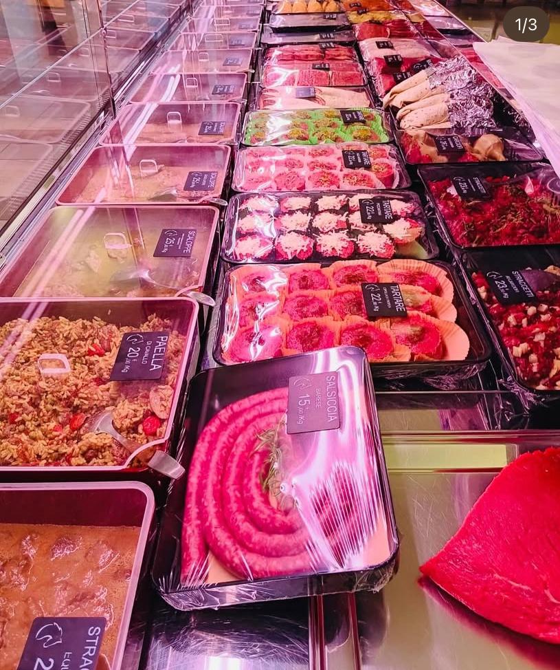 Un negozio tradizionale, in cui importante oltre all’attività è sempre stato il rapporto umano. Roberto insieme alla moglie Dina, portano avanti la macelleria con sacrificio e dedizione sino a che, negli anni 90, dopo qualche problema di salute di Roberto, ad affiancarli si unisce anche il figlio Giovanni. Nel 2002 il negozio passa definitivamente di mano al figlio, ma Roberto continua a dargli una mano. Roberto era la tradizione, Giovanni l’innovazione (si pensi all’incremento dell’attività di street food, ad esempio, e alla partecipazione ai mercati del lunedì, mercoledì e giovedì) e le due cose hanno da sempre convissuto all’interno dell’attività.