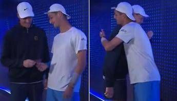 (Adnkronos) – Un regalo speciale. Jannik Sinner compie 24 anni e oggi, 16 agosto, festeggia battendo il francese Terence Atmane per 7-6, 6-2 nella semifinale dell’Atp Masters 1000 di Cincinnati. L’azzurro, che nell’allenamento mattutino ha ricevuto gli auguri del pubblico con un tradizionale ‘happy birthday’, prima della sfida con il 23enne transalpino viene sorpreso dall’omaggio dell’avversario.
