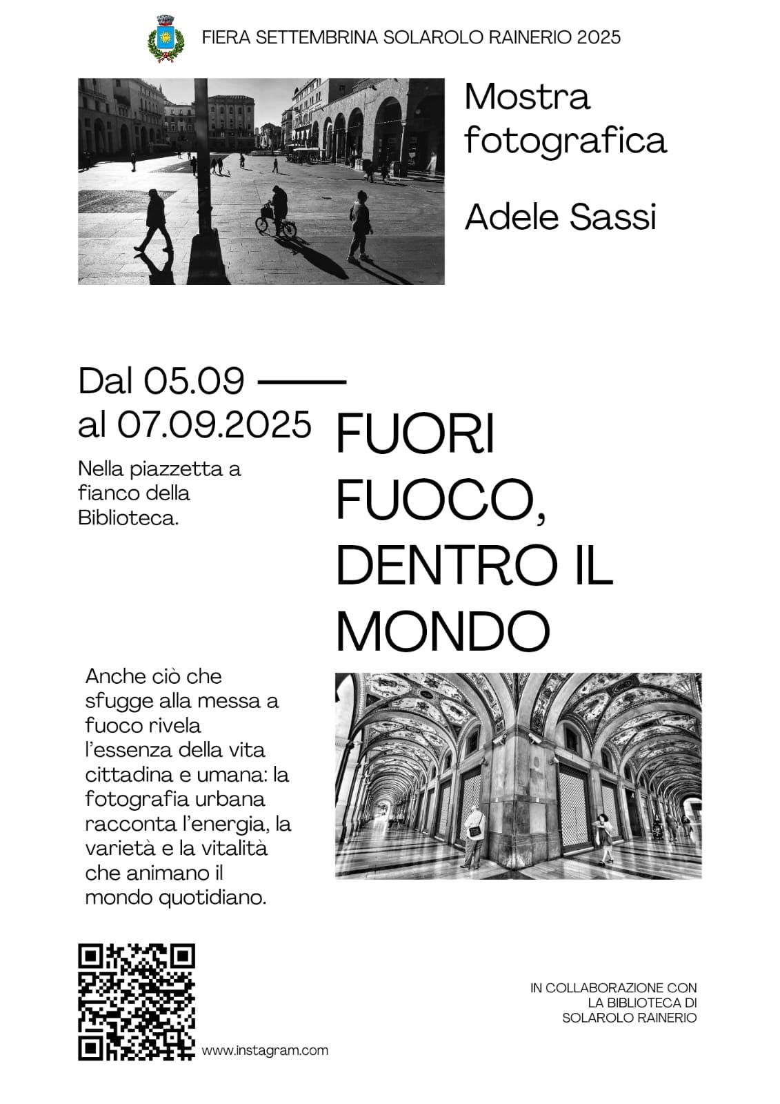 Ci sono poi eventi fuori cartellone: dal laboratorio del gessetto con i Madonnari di Bergamo il venerdì pomeriggio dalle 15.30, ai balli popolari dal mondo venerdì sera dalle 20.30 e, durante il weekend, alla mostra fotografica di Adele Sassi allestita in biblioteca.
