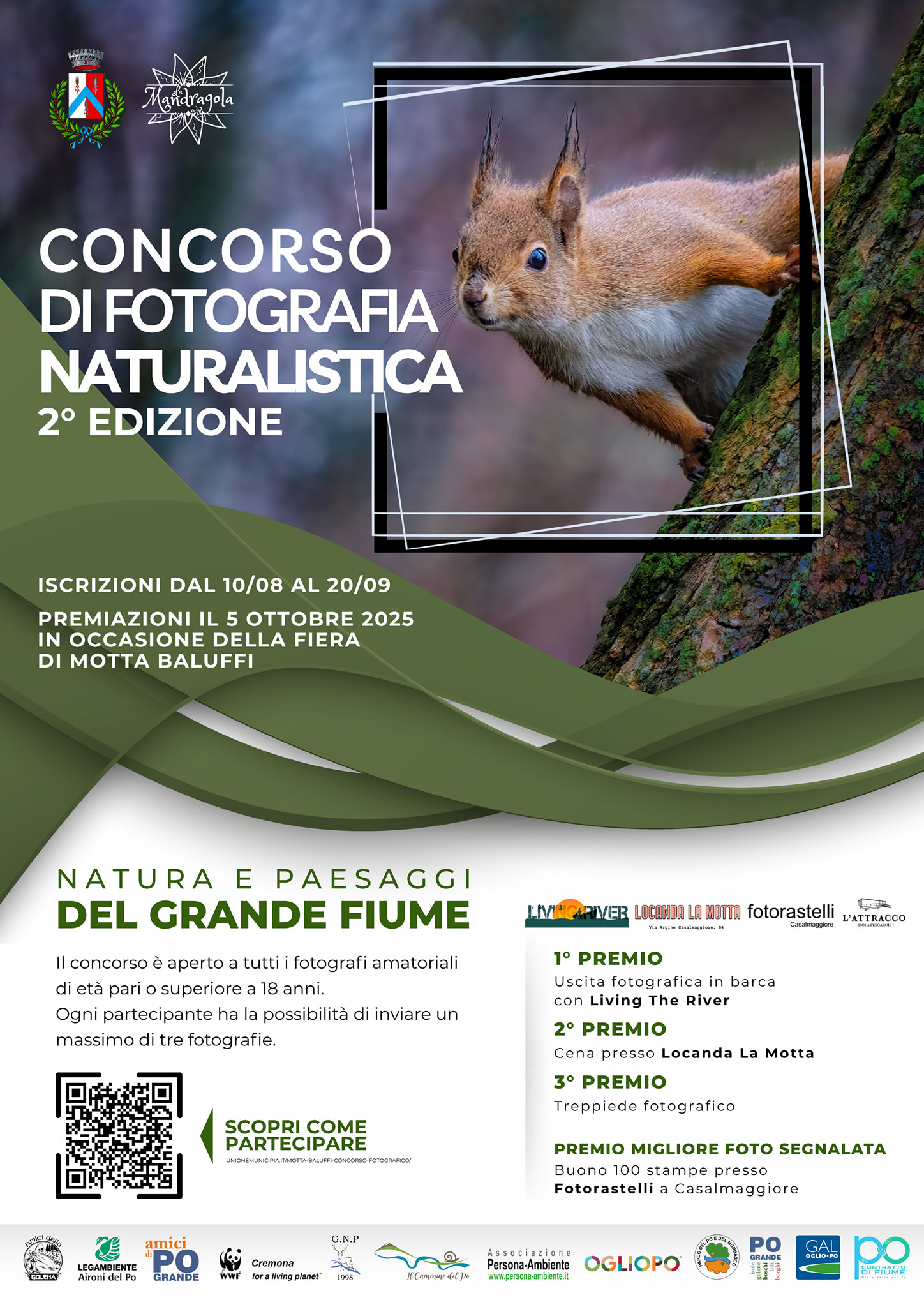 Immortalare l’incanto della natura che abbraccia il Grande Fiume: con questo spirito nasce il concorso fotografico “Natura e Paesaggi del Grande Fiume”, promosso dal Comune di Motta Baluffi ed organizzato dall’associazione La Mandragola Odv.