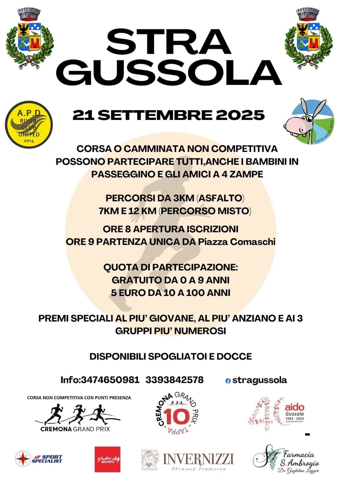 Da quest’anno la StraGussola, manifestazione podistica ludico-amatoriale, è inserita nel circuito podistico “Cremona Grand Prix”, campionato provinciale riproposto nel 2025.