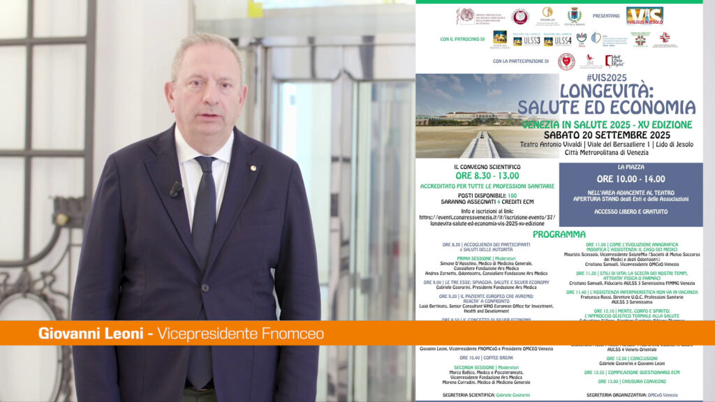 ROMA (ITALPRESS) – Longevità, salute ed economia. Questi i temi al centro della 15esima edizione di “Venezia in Salute”, manifestazione promossa dall’Ordine dei Medici della città lagunare e dalla Fondazione Ars Medica, con il sostegno della Federazione Nazionale degli Ordini dei Medici Chirurghi e degli Odontoiatri (Fnomceo).