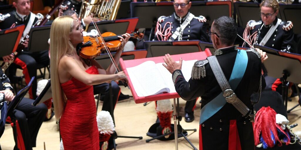 Colpo di scena della serata, la presenza della celebre violinista Anastasiya Petryshak, che ha accompagnato la banda, aprendo il concerto con “Meditation”, brano tratto dall’opera Thais di Massenet.