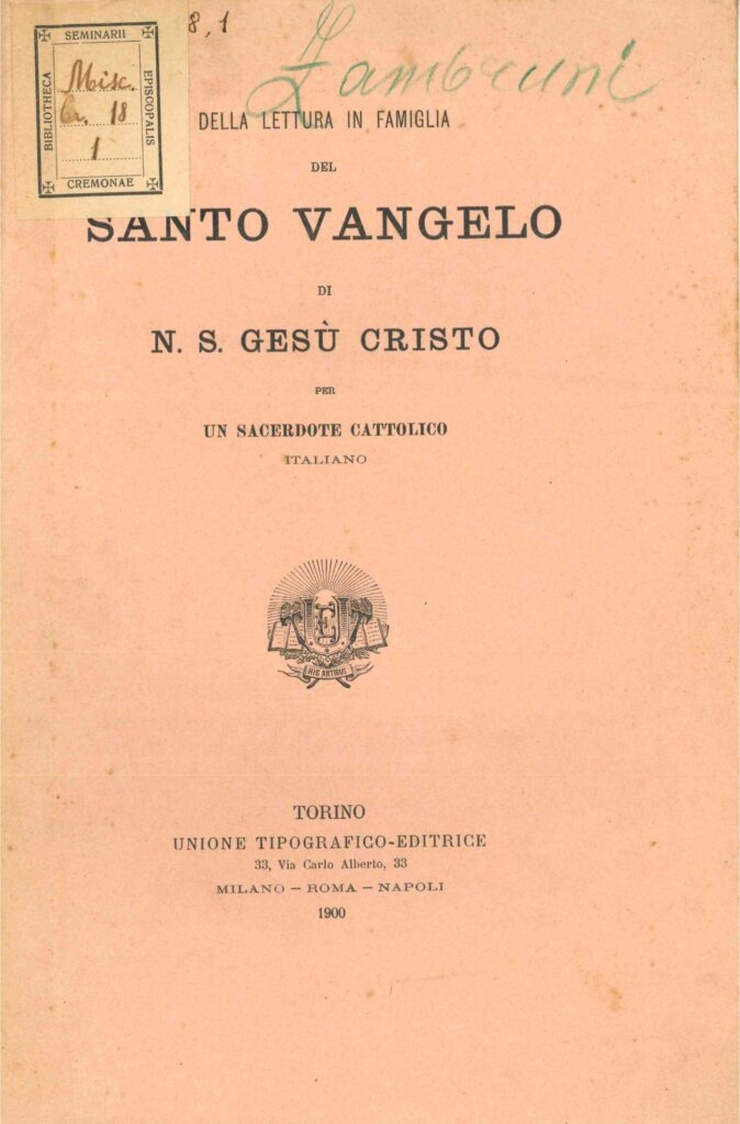 Il momento decisivo della sua attività risale al 1900, quando pubblicò anonimamente l’opuscolo Della lettura in famiglia del Santo Vangelo per un sacerdote cattolico italiano, in cui proponeva di riprendere l’antica pratica della lettura domestica del Vangelo, affidandola al capo famiglia. L’iniziativa riscosse grande consenso e, una volta rivelata la sua identità, Zambruni venne ricevuto da Papa Pio X, che lo invitò a proseguire nel suo impegno.