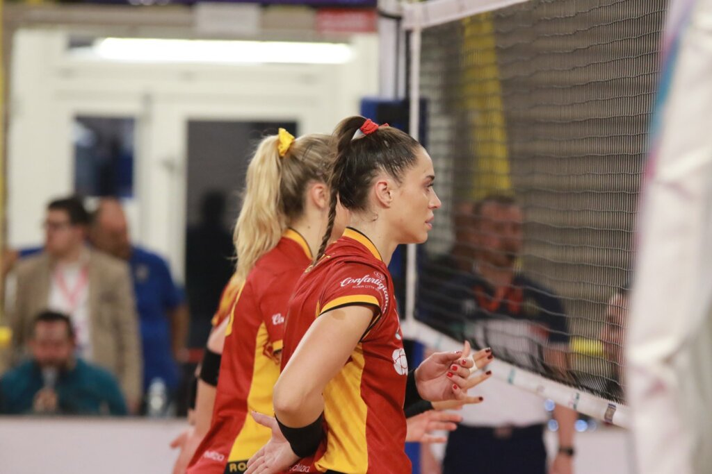 Julia Kavalenka trova il tocco del muro ospite e apre la gara, 1-0, la battuta out di Costagli pareggia i conti 1-1, Roma poi si porta in vantaggio con un muro su Vazquez, 2-1. Guidi manda lunga la sua battuta e riporta tutto in parità, 2-2. Gran bel primo tempo di Nwokoye che mette la palla nei tre metri e fa 4-3. Palla strepitosa di Vazquez che beffa la difesa ospite e allunga 5-3, arriva anche il successivo ace di Kavalenka, 6-3. Casalmaggiore allunga ancora, fa 7-3 e costringe coach Cuccarini a chiamare il primo time out di gara. Si torna in campo e l’attacco giallorosso è out, 8-3 Casalmaggiore.