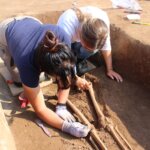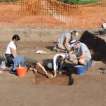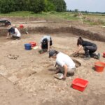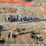 La campagna di scavo dell’ottobre 2025 si sta invece concentrando su un’area esterna del vicus, verso sud-est (località Campo del Generale), dove i segnali geofisici mostravano una promettente concentrazione di anomalie: abbiamo quindi messo in luce un tratto di una grande strada romana (la cosiddetta “Vitelliana”), orientata S-SE, che metteva in comunicazione Bedriacum e la Via Postumia con un approdo sul Po, all’altezza di Casalmaggiore.
