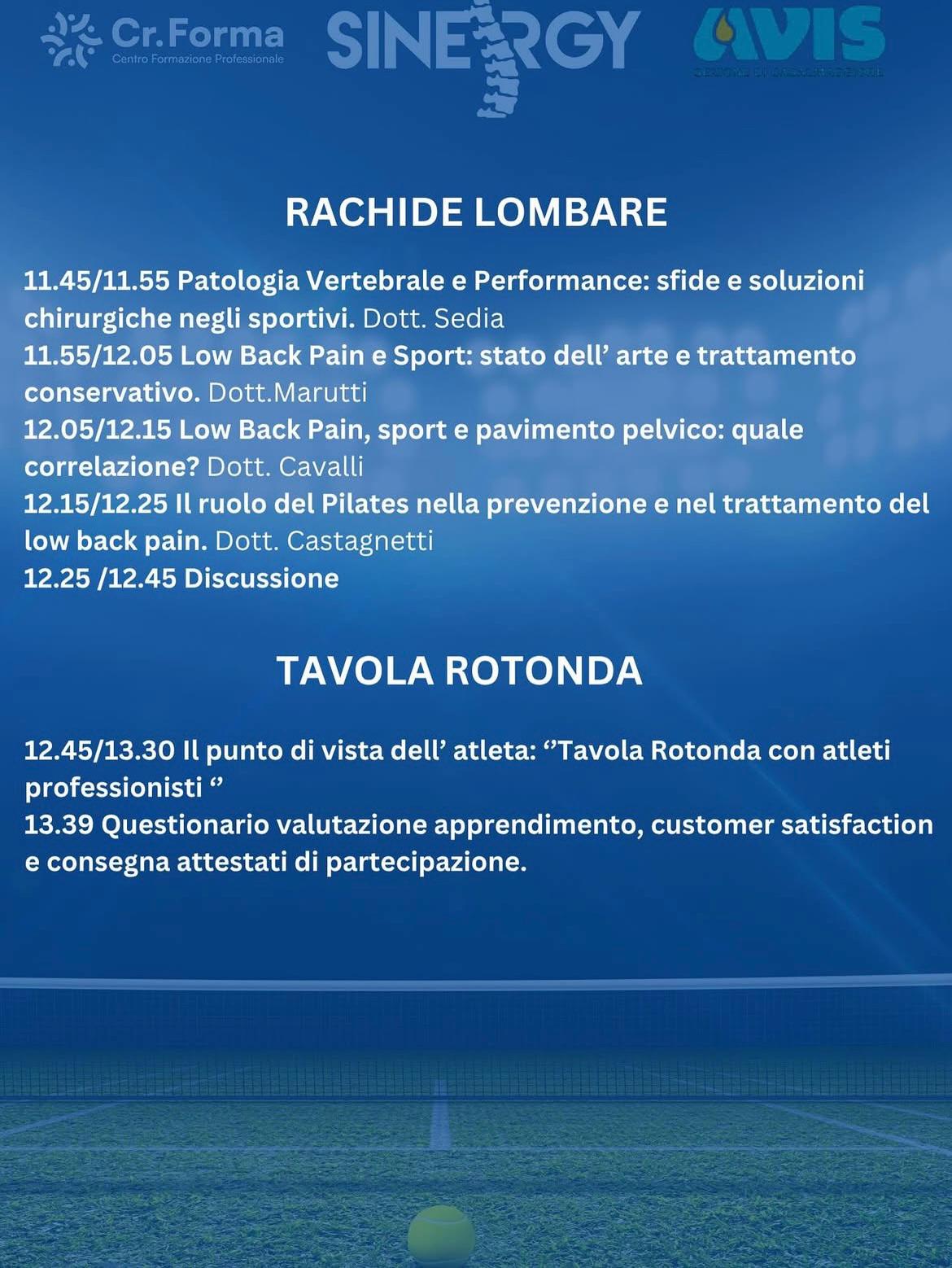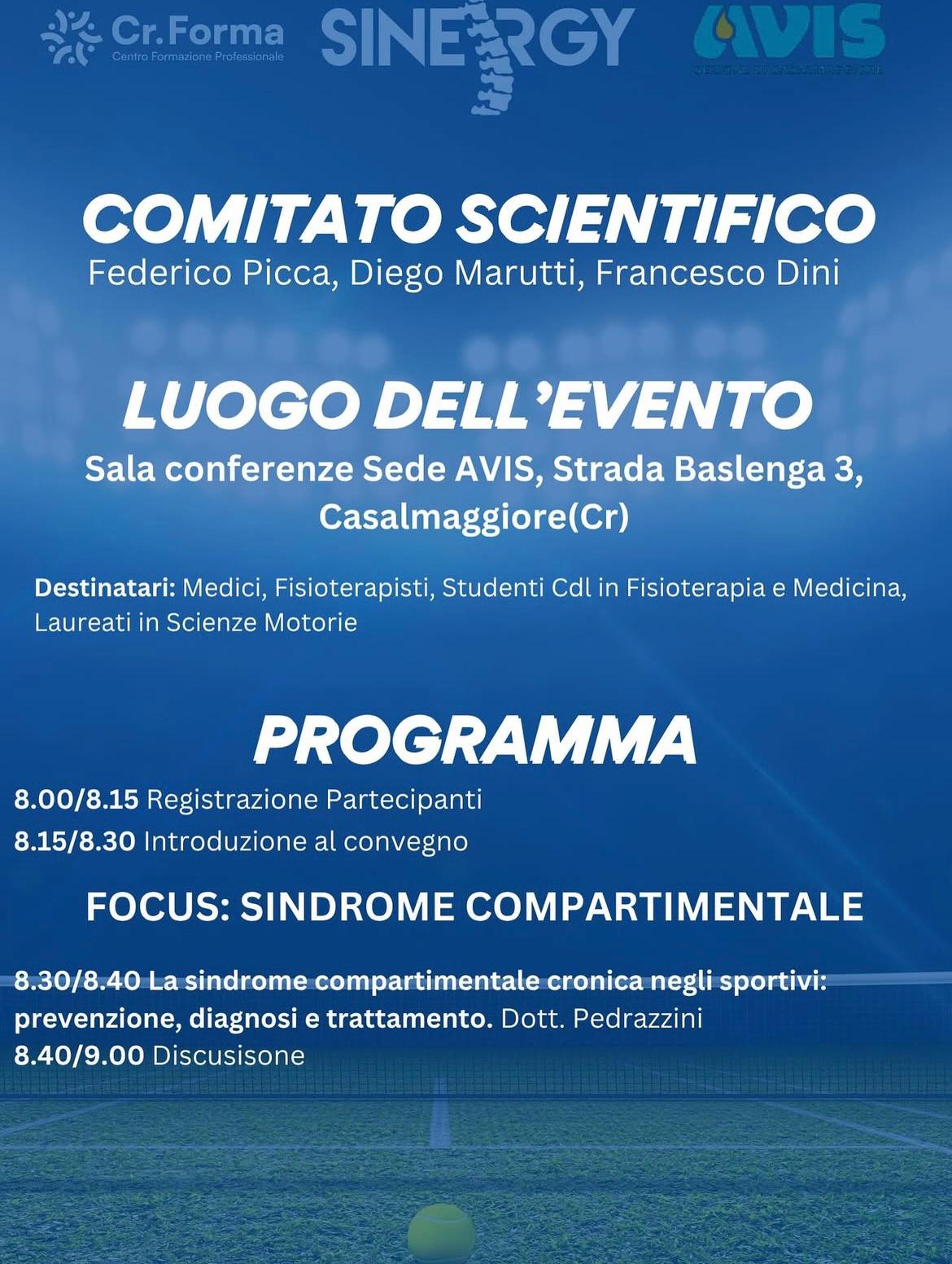 Seconda edizione, sabato mattina, dello Sport Rehab 360° organizzato da Sinergy, che un grande successo ha riscosso nell’edizione numero 1 del 2024. L’evento vede il supporto di Cr.Forma e di Avis, che nella propria sede di Casalmaggiore ospiterà l’iniziativa. Tanti i relatori, tutti formati sul tema della riabilitazione, con i destinatari delineati nelle figure di medici, fisioterapisti, studenti in Fisioterapia e Medicina e laureati in Scienze Motorie.