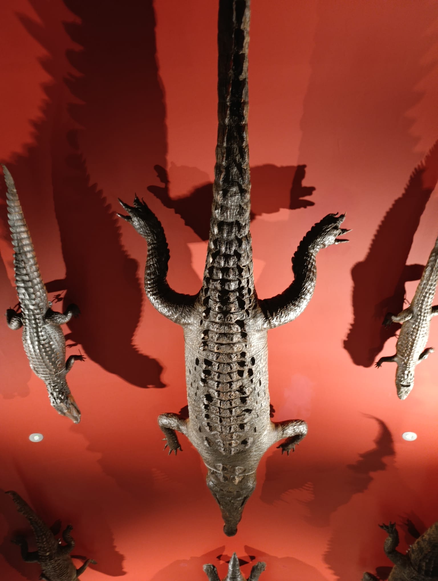 Coccodrilli, tartarughe marine, leopardi, conchiglie giganti, uccelli variopinti, coralli, spugne, scheletri, crani.