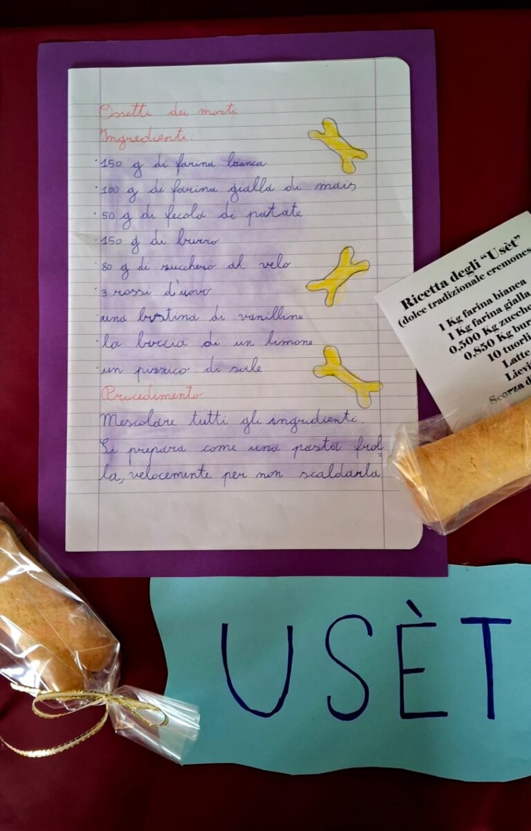 Le classi più piccole hanno studiato il ciclo biologico del fagiolo, mentre le quarte e quinte hanno raccolto e trascritto le ricette di famiglia, mettendo in luce come la tradizione, seppur simile, cambi da casa a casa”. Non sono mancati riferimenti ai crisantemi, “utubrìin” in dialetto cremonese, simbolo del Giorno dei Morti, che hanno colorato l’orto didattico recentemente inaugurato. L’evento ha coinvolto anche la forneria del paese, che ha collaborato con gli alunni per la cottura del dolce tipico del Giorno dei Morti, gli “usèt”. Ognuno dei 152 bambini ha potuto portare a casa il proprio dolcetto, frutto di un laboratorio alimentare dedicato alla tradizione.