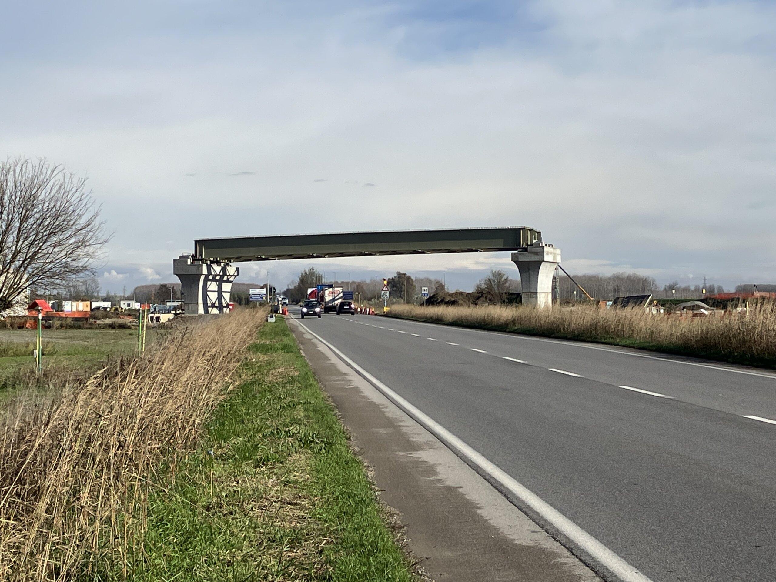 Nel pomeriggio di lunedì 17 è stata compiuta la posa dell’impalcato metallico lungo 55 metri, 330 tonnellate di peso, tra le pile 3 e 4 del cavalcaferrovia, che si trova lungo la Sp 67 a Marcaria. L’operazione – avvenuta tramite due maxi-gru che hanno sollevato in simultanea la trave imbragata – si è svolta con la massima precisione e puntualità.