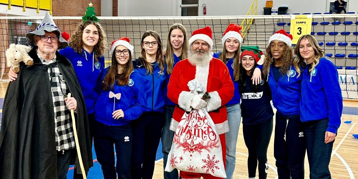 Zanichelli, volto del Natale nella cittadina, con le ragazze del Viadana Volley